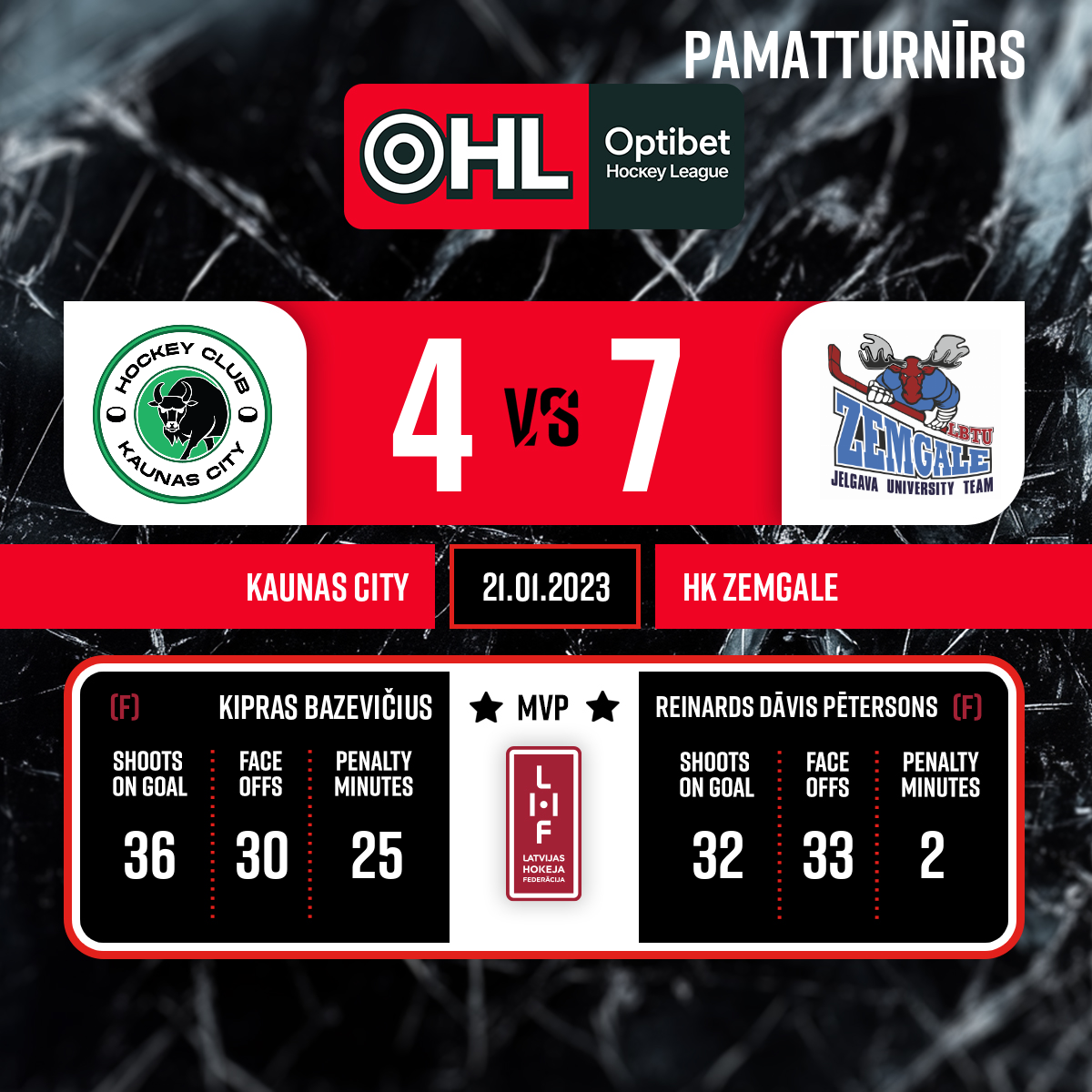 Vārti vairākumā#75 Ernests BĒRZIŅŠPiespēles: #5 Patriks SEILIS, #9 Kristaps KRISTIŅŠ - 43:263.P