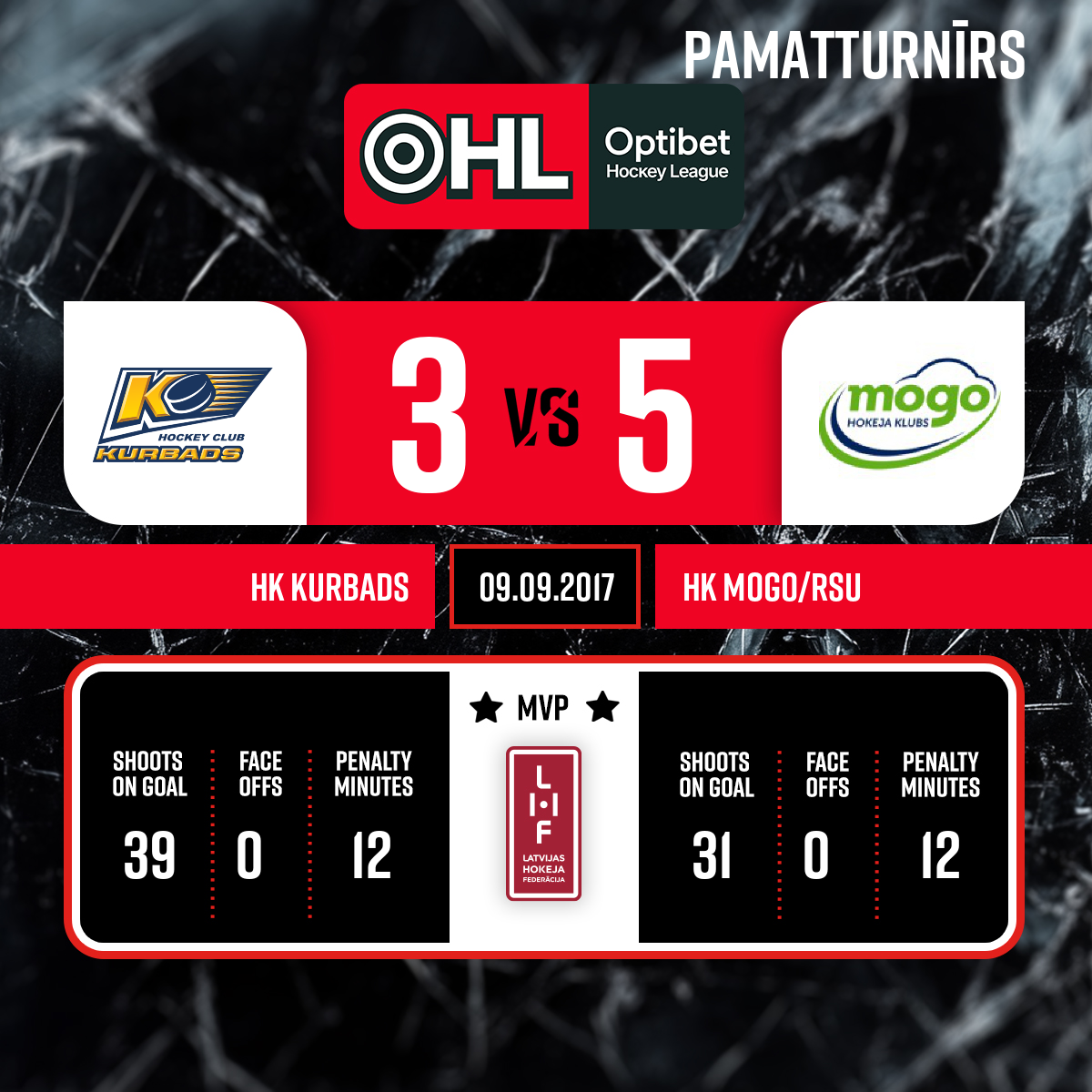 - 20:001.PMetieni pirmajā periodā HK Kurbads -9 HK Mogo - 8 Iemtieni pirmajā periodā HK Kurbads - 7 HK Mogo -8