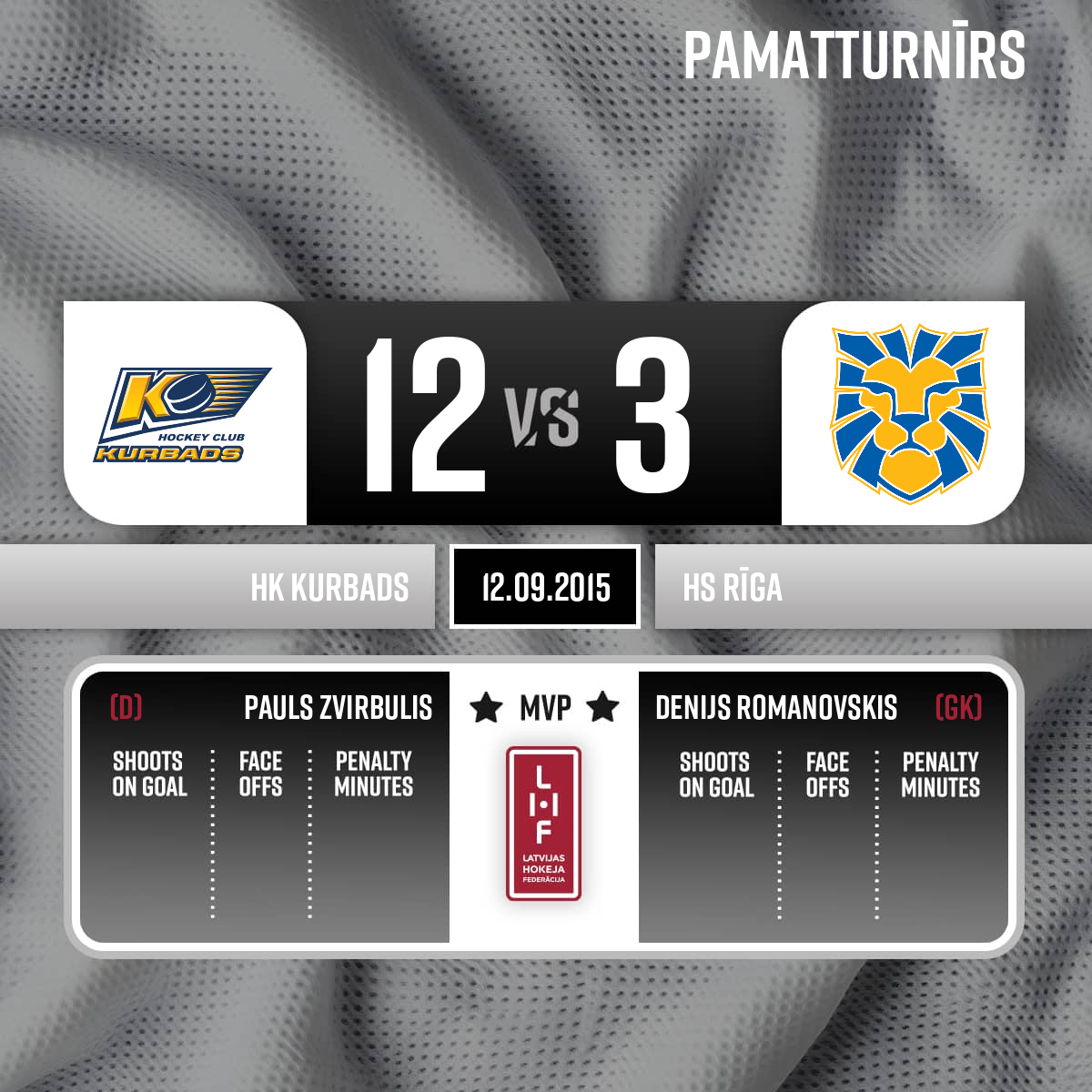 - 60:003.PSpēles labākie spēlētāji : HK Kurbads Pauls Zvirbulis #2: HS Rīga Denijs Romanovskis #1