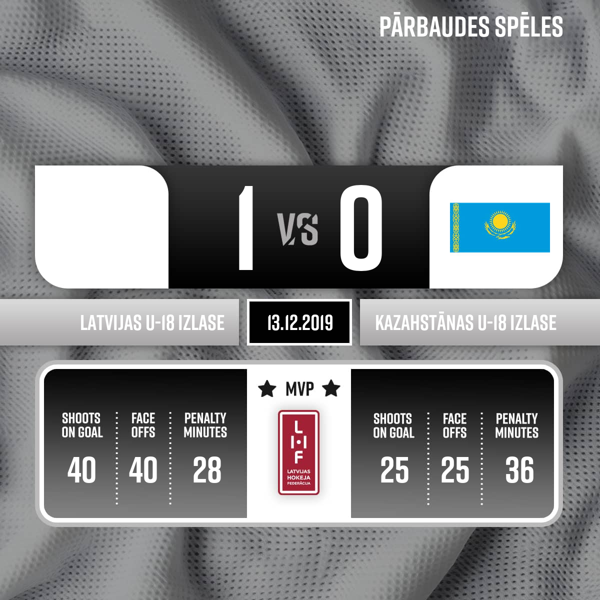 - 60:003.PLabākie spēlētāji/ Best Player of game Latvija U18 – Nr 8 VĪTOLIŅŠ Raimonds Mikus Kazahstāna U-18 – Nr 1 PESTOV Vladislav