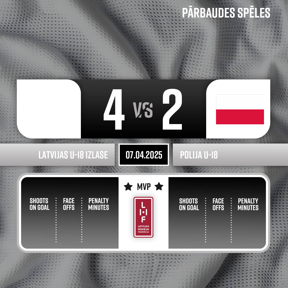 Vārti vairākumā#13 Mikołaj OSIADŁYPiespēles: #15 Szymon GUMIŃSKI, #19 Wiktor ZAJĄC - 55:483.PNoraidījums - 2 minūtesSitiens ar nūju, #5 Reinis AUZIŅŠ