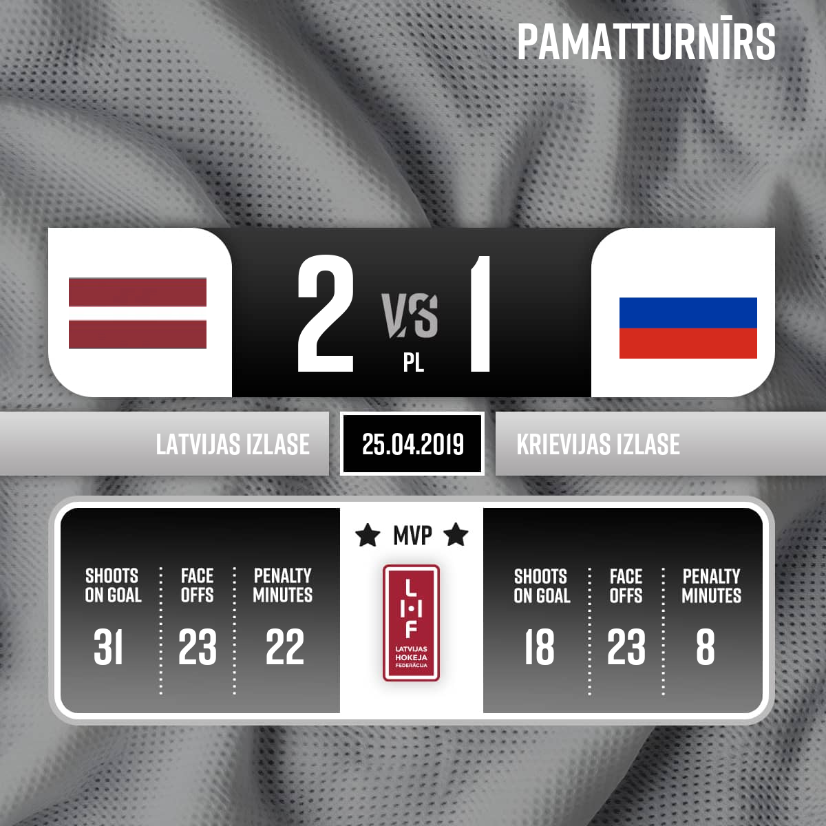 Noraidījums - 20 minūtesNoraidījums līdz spēles beigām, #71 Roberts BUKARTS - 52:483.PLatvijas komanda spēlē pilnā sastāvā Team Latvia is playing at full strength