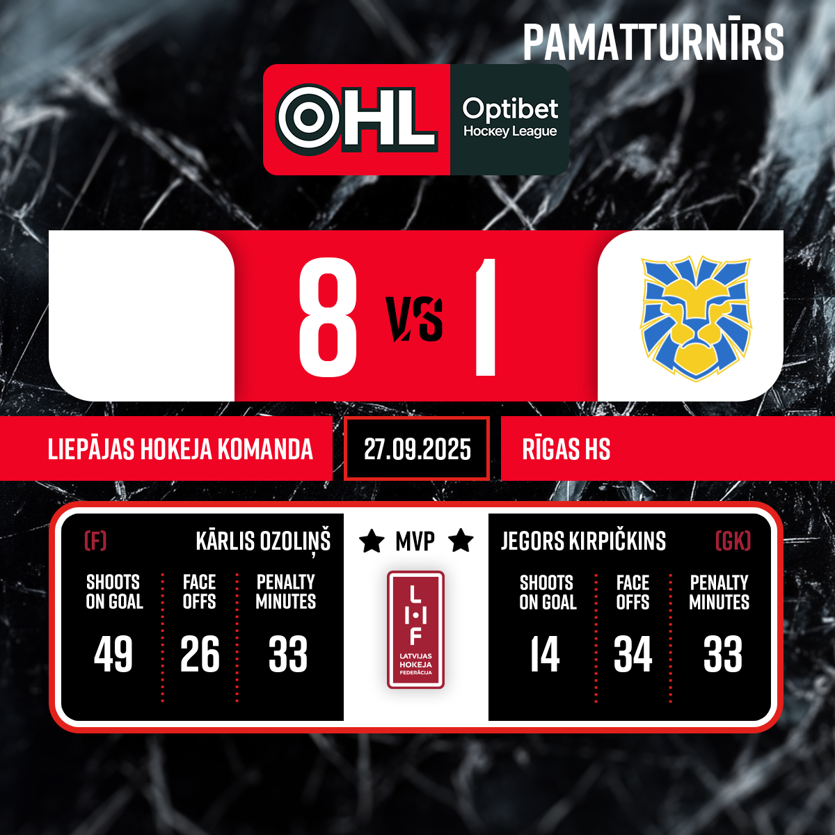 Piespēles: #18 Ralfs GRINBERGS#72 Kevins STRĀDNIEKS3:138:28