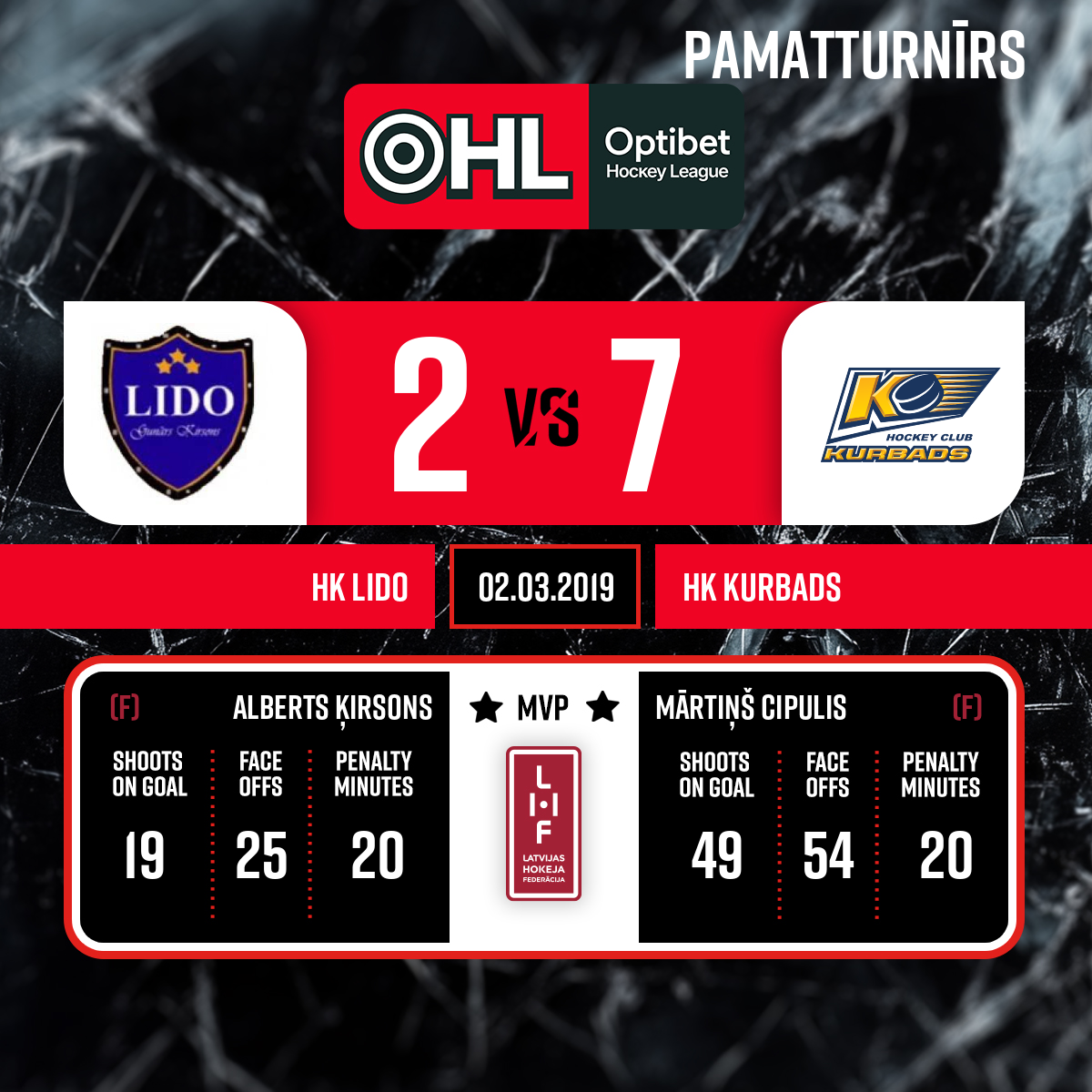 - 60:003.PLabākie spēletāji: HK Lido - Alberts Ķirsons #17 HK Kurbads - Mārtiņš Cipulis #47