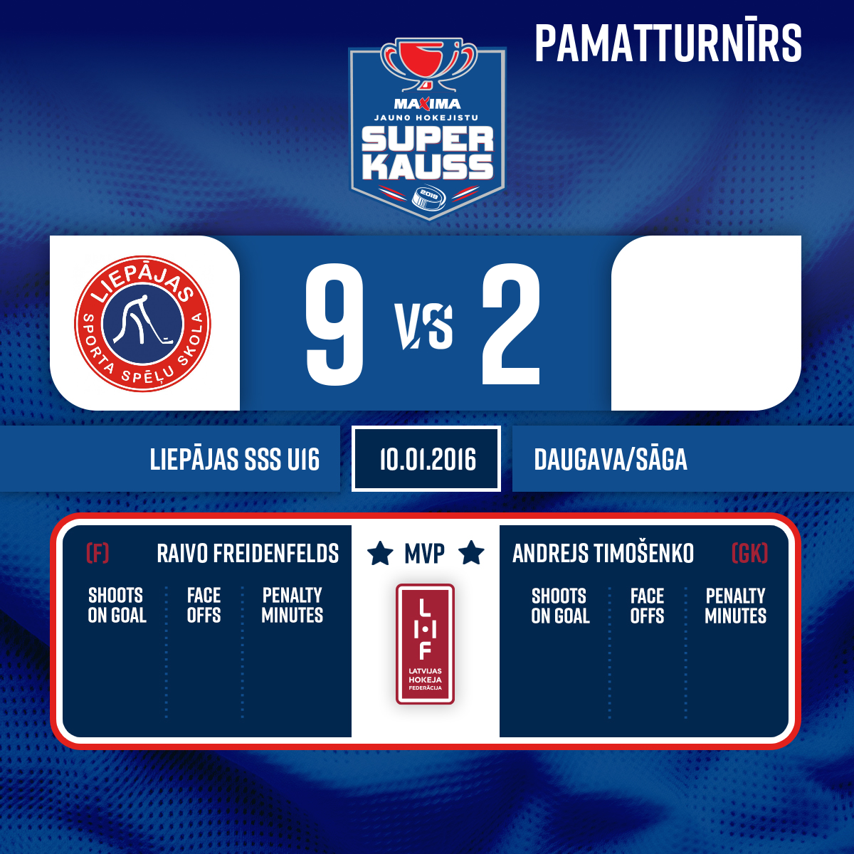 Vārti#41 Niks ZĪLEPiespēles: #7 Raivo FREIDENFELDS, #19 Ričards Rihards FOMINS - 12:551.PNoraidījums - 2 minūtesPretinieka nūjas turēšana, #27 Devids ŠEFLANDS