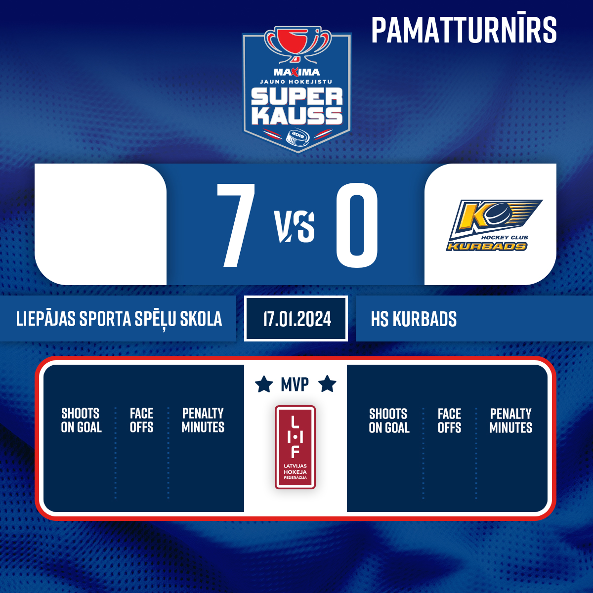 Vārti#25 Ronalds MIĶELSONSPiespēles: #17 Kurts Kristers BAUMANIS, #16 Reinholds CIRCENIS - 00:001.PVārtsargs stājas vārtos#1 Domeniks MARTINOVS VĪNKALNS