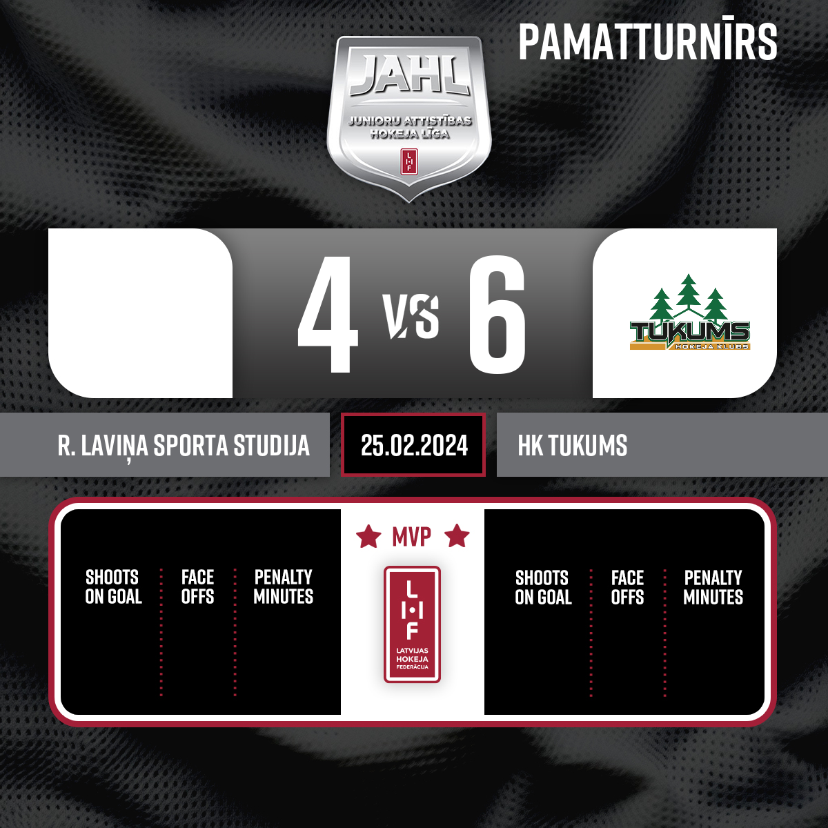 Vārti#25 Rolands TUVIŠKINSPiespēles: #29 Reinis RAMANIS, #11 Matiass Daniels GRĪNBERGS - 11