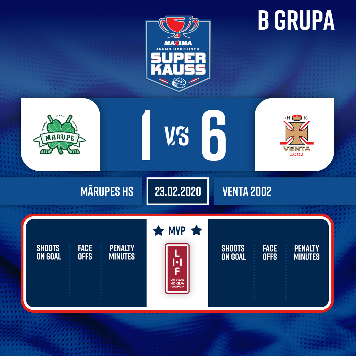 Vārti#23 Roberts ŠĶUTEPiespēles: #17 Matiass Daniels GRĪNBERGS, #82 Ralfs SALMS - 00:001.P