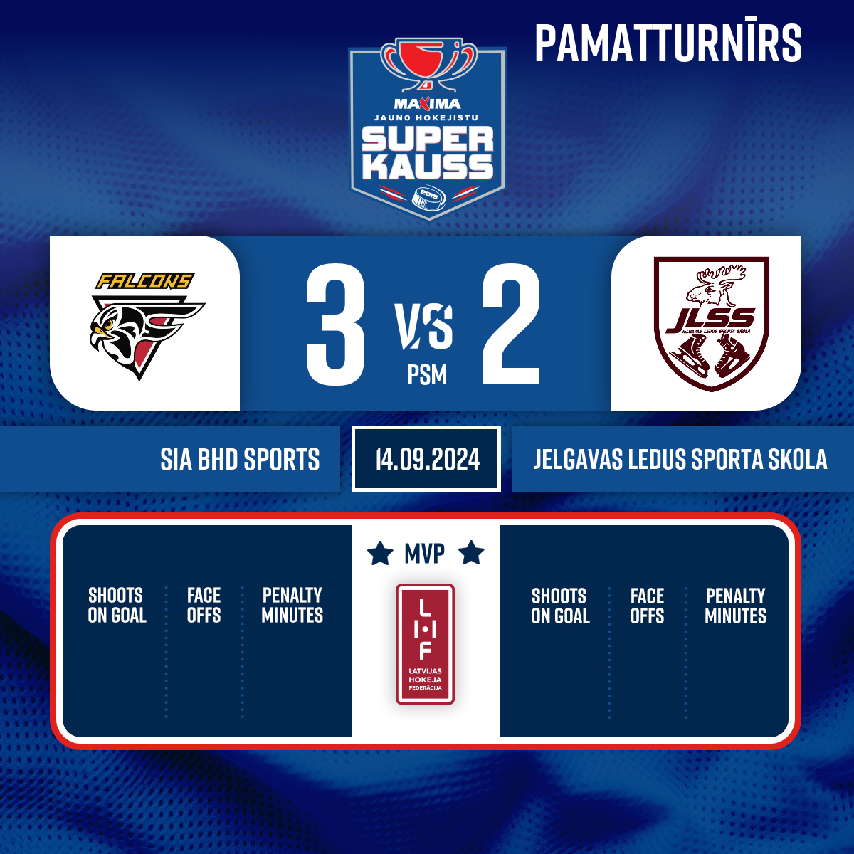 Vārti#91 Dainis NIKOLAJEVSPiespēles: #11 Artem SANNIKOV, #19 Markuss BUDŅIKS - 00:001.PSpēles tiesneši: Galvenie tiesneši - EGLĪTIS J., OZOLIŅŠ A.