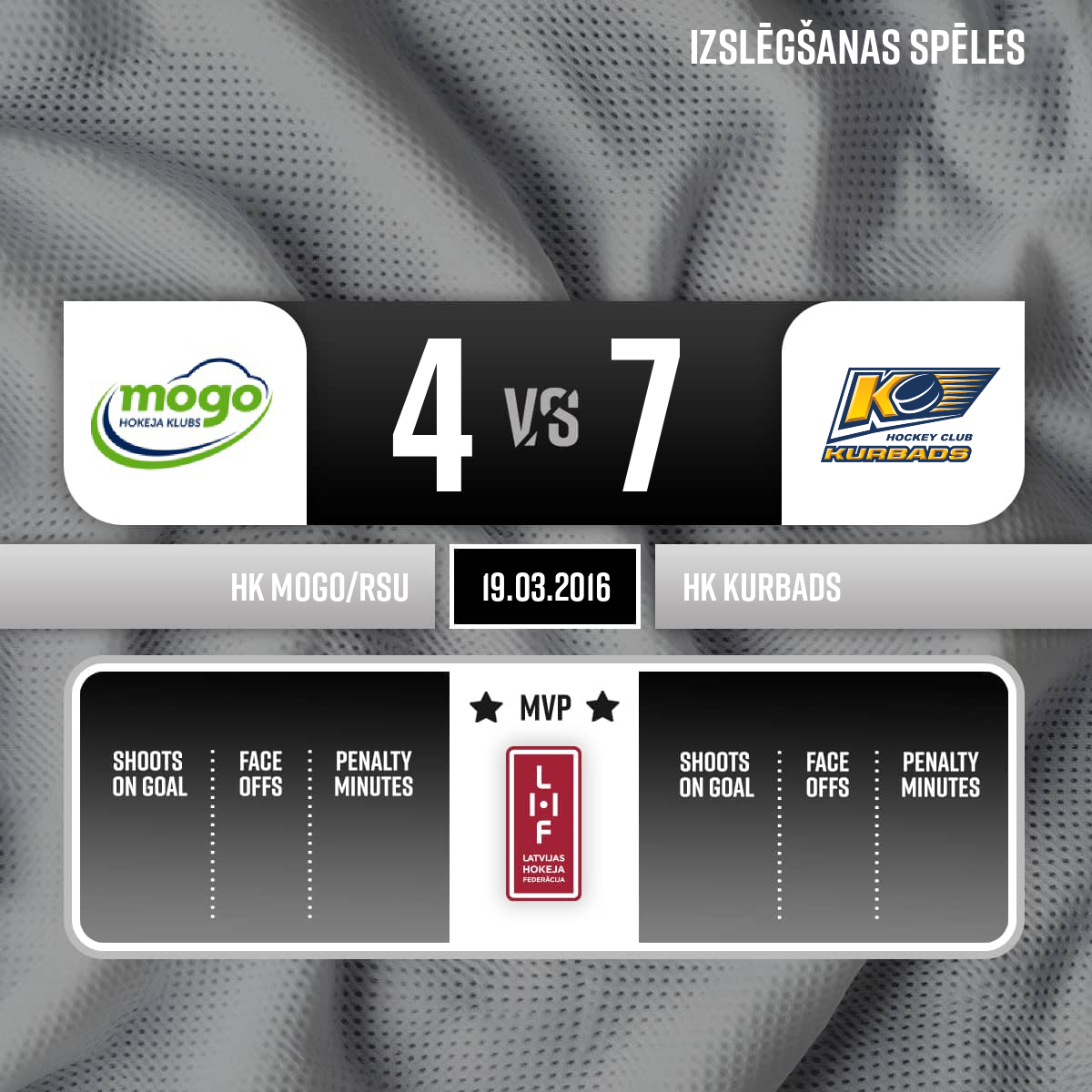 Noraidījums - 2 minūtesPretinieka turēšana ar nūju, #88 Artsiom KARKOTSKI - 44:383.PMogo spēlē pilnā sastāvā