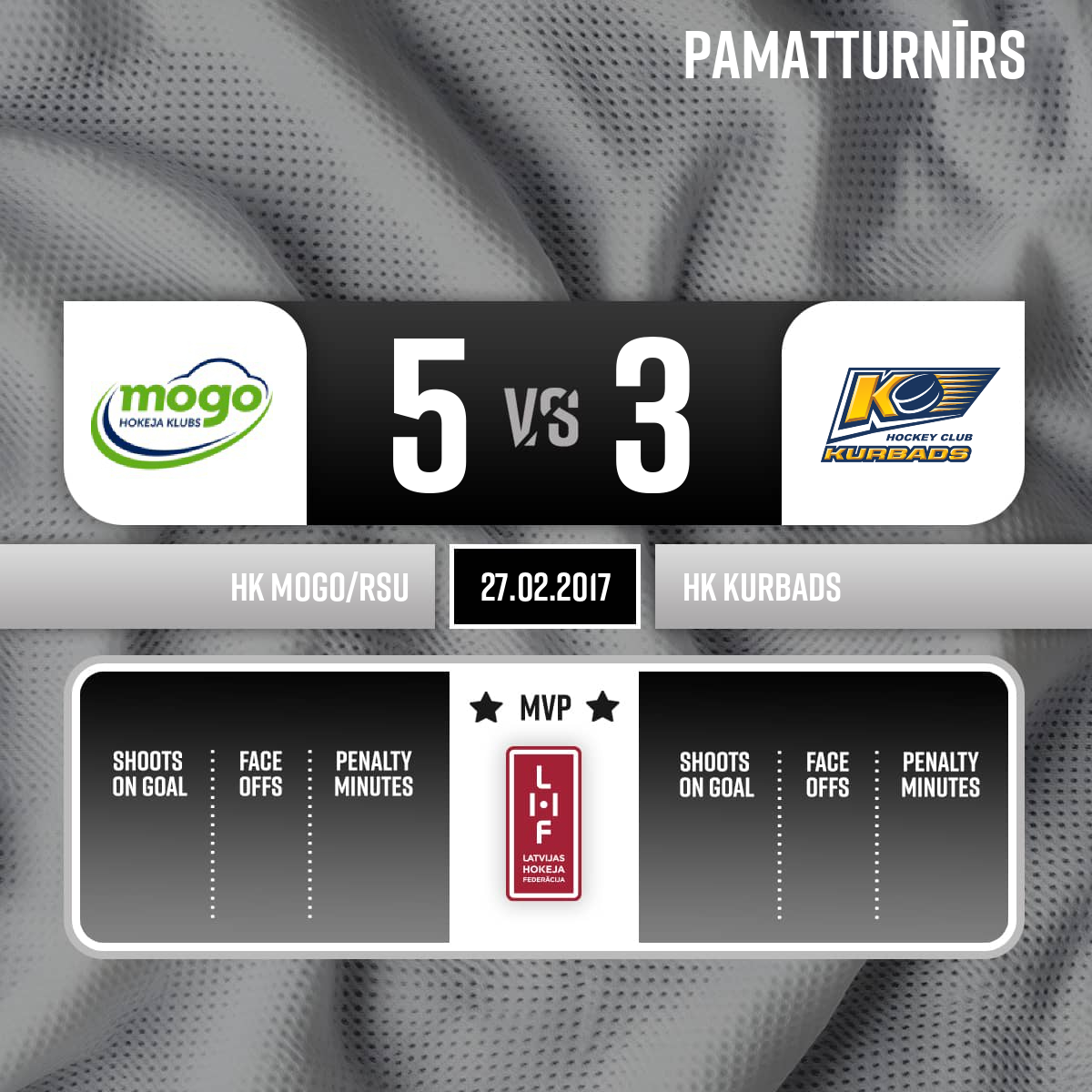 - 60:003.PLabākie spēlētāji: HK Mogo #28 Vladimirs Mamonovs HK Kurbads #8 Edgars Brancis