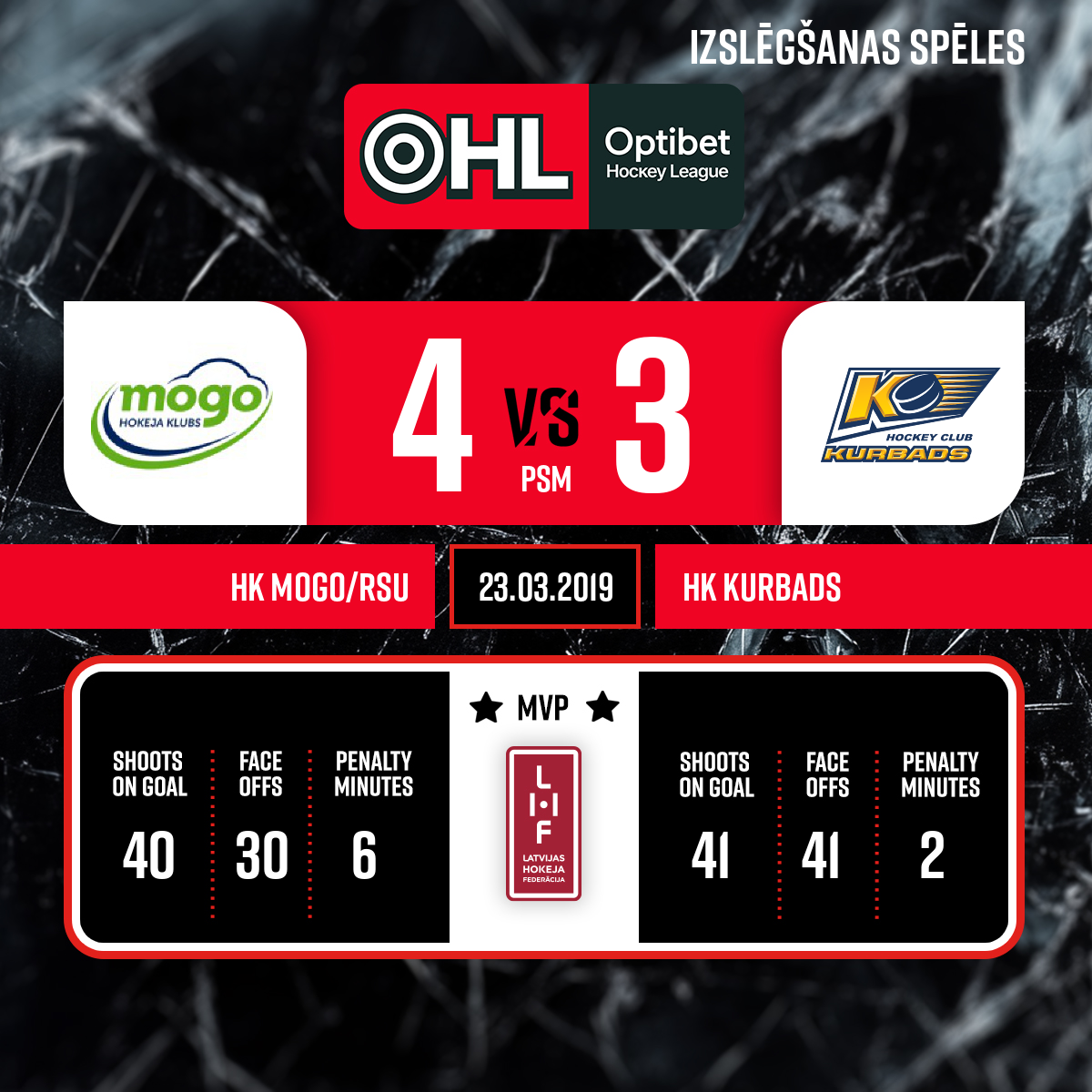 Vārti#9 Gatis GRICINSKISPiespēles: #88 Rihards MARENIS, #17 Elviss ŽELUBOVSKIS - 50:163.PHK MOGO – spēlē pilnā sastāvā