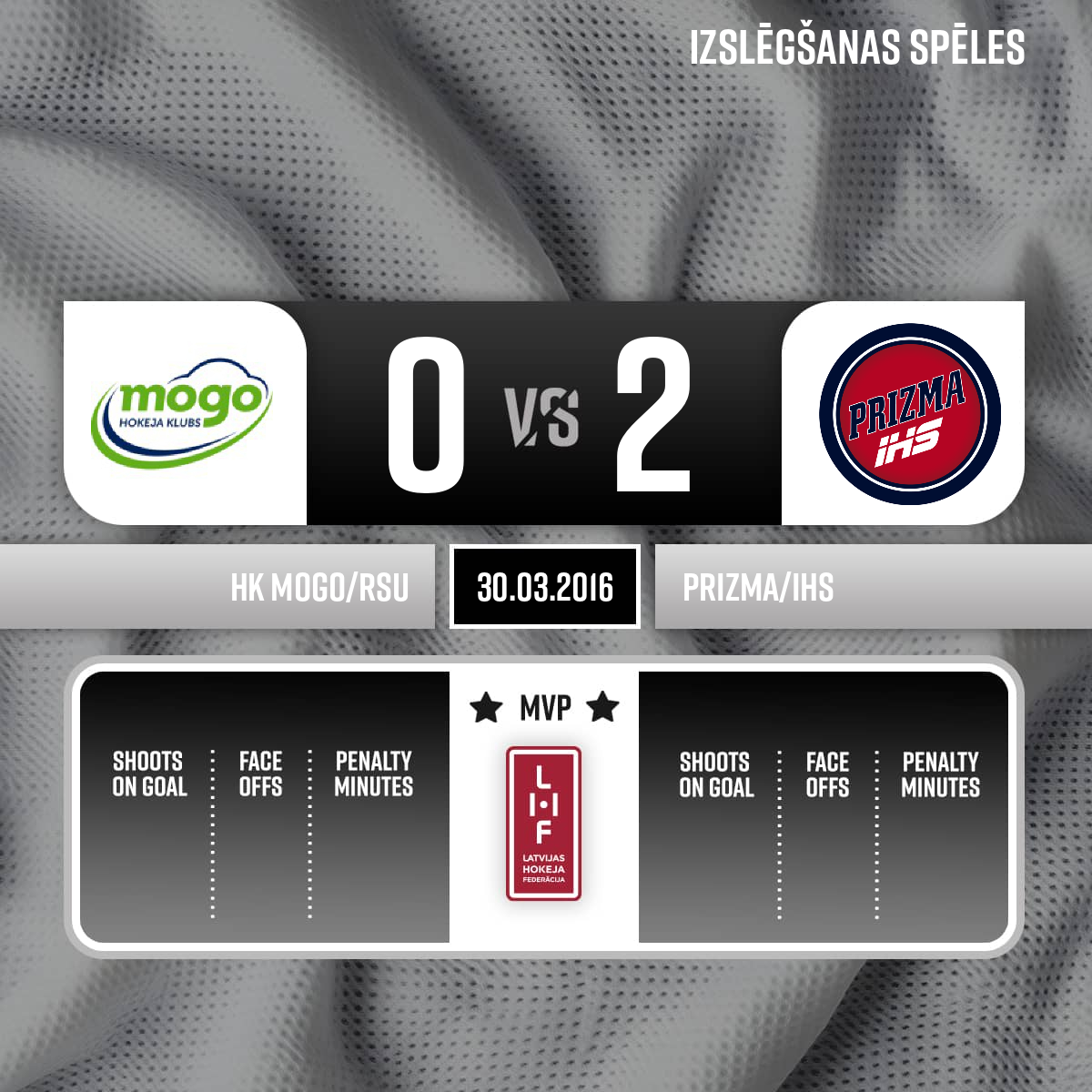 Noraidījums - 2 minūtesGrūdiens ar nūju rokās, #23 Mihails BOGDANOVSPrizma spēlē pilnā sastāvā - 34:552.P