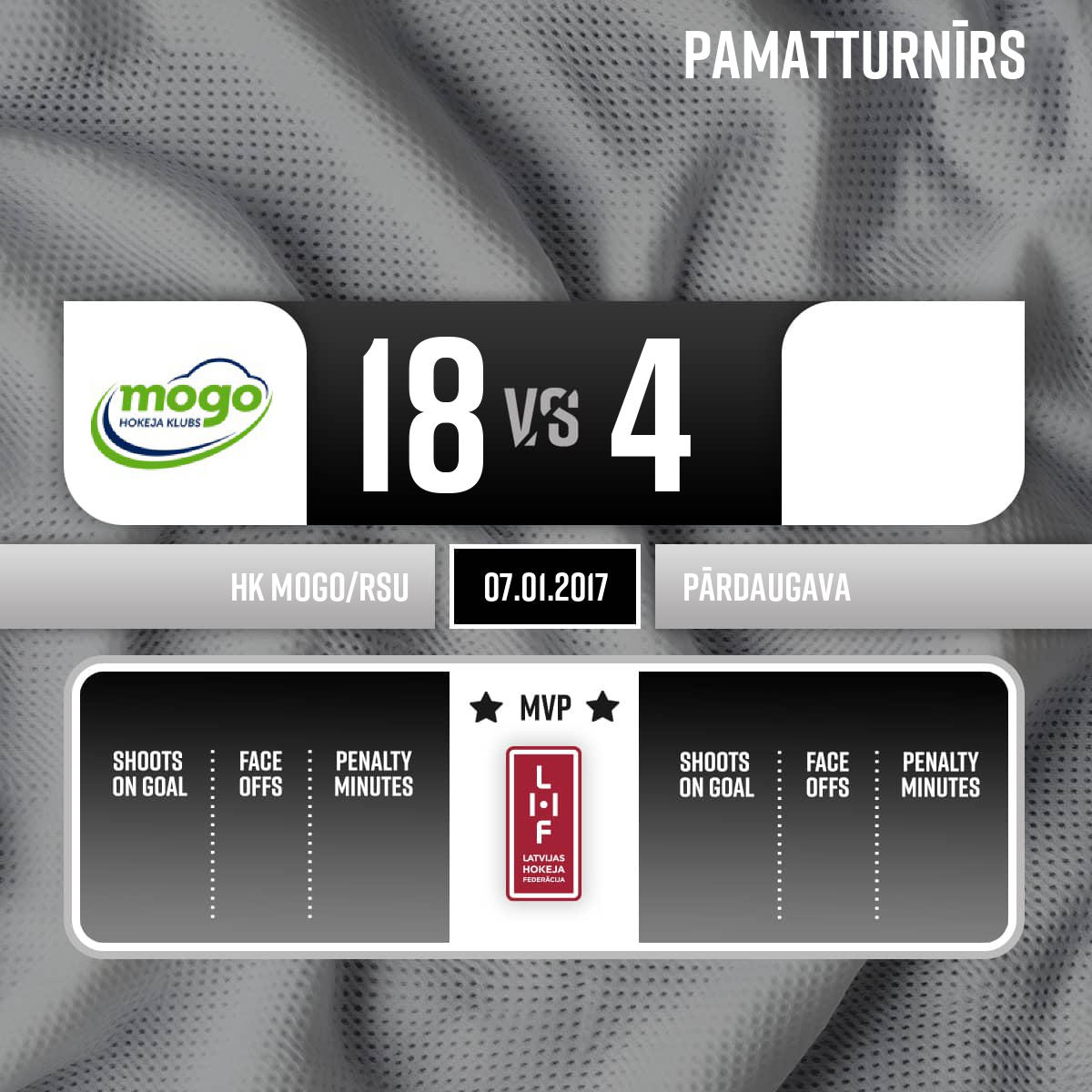 Vārti#13 Edgars KURMISPiespēles: #69 Rūdolfs PRŪSIS, #7 Rustams BEGOVS - 16:221.PNoraidījums - 2 minūtesPretinieka turēšana, #61 Krišjānis REINFELDS