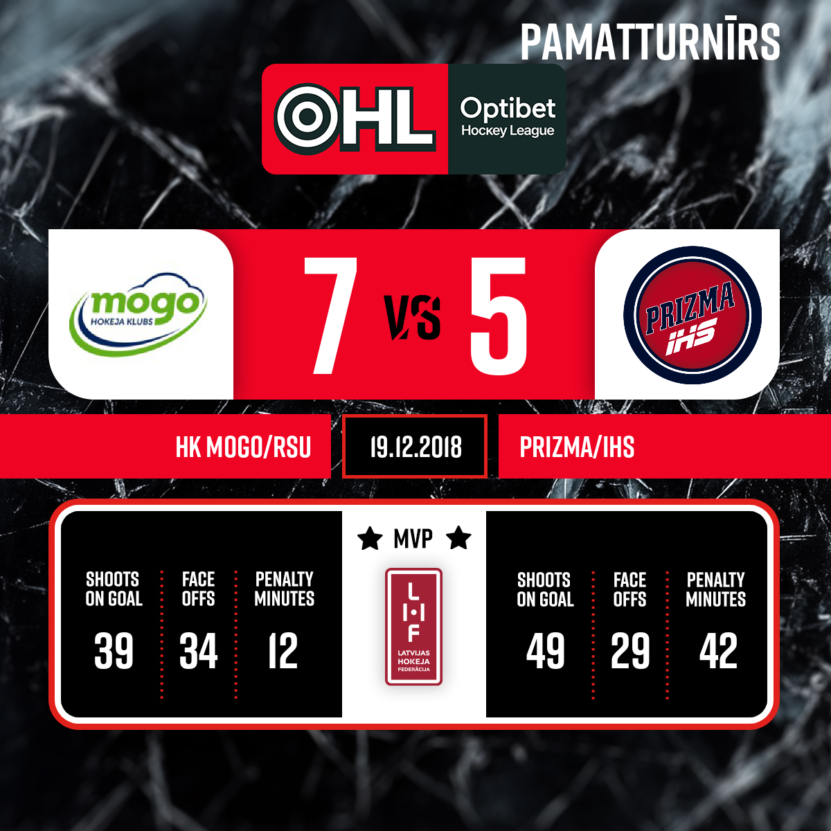 - 60:003.PSpēles labākie spēlētāji: HK MOGO – Vladimirs Mamonovs #28 HK Prizma – Krists Apsītis #61