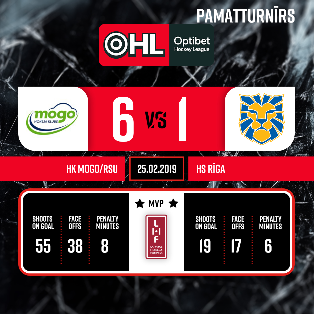 Noraidījums - 2 minūtesKlupināšana, #22 Rūdolfs POLCS - 00:001.PSpēles tiesneši- Galvenie tiesneši- Andrejs Jakovļevs, Juris Laicāns, līnijtiesneši- Emīls Druseiks,Agris Ozoliņš