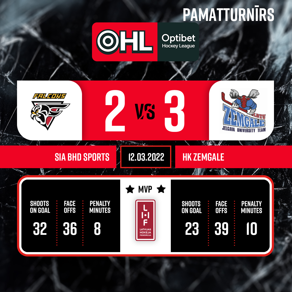 - 60:003.PSpēles labākie spēlētāji – MOGO/LSPA- Nr 34 SIMANOVIČS Rihards HK Zemgale/LLU – Nr 23 GORŠĀNOVS Daniels