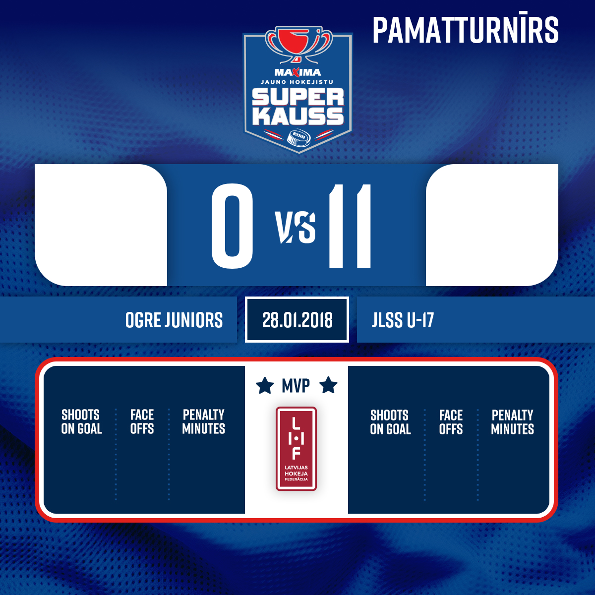 #27 Klāvs VEINBERGSPiespēles: #17 Bogdans HODASS#8 Ričards BRIŅECS0:103:01
