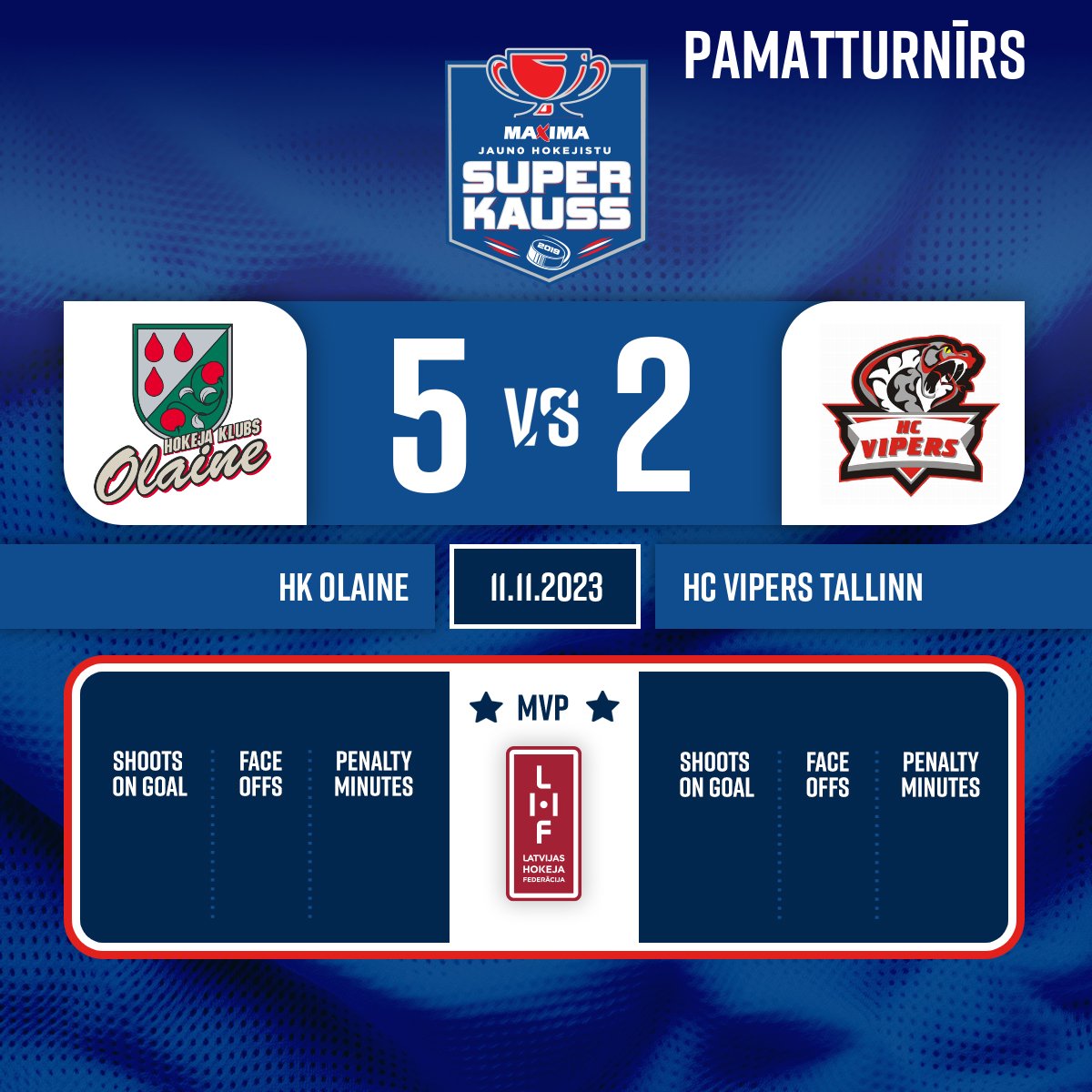 Piespēles: #7 Roberts KUDELKO#27 Artemijs FREIMANIS3:133:18- 1. Periods