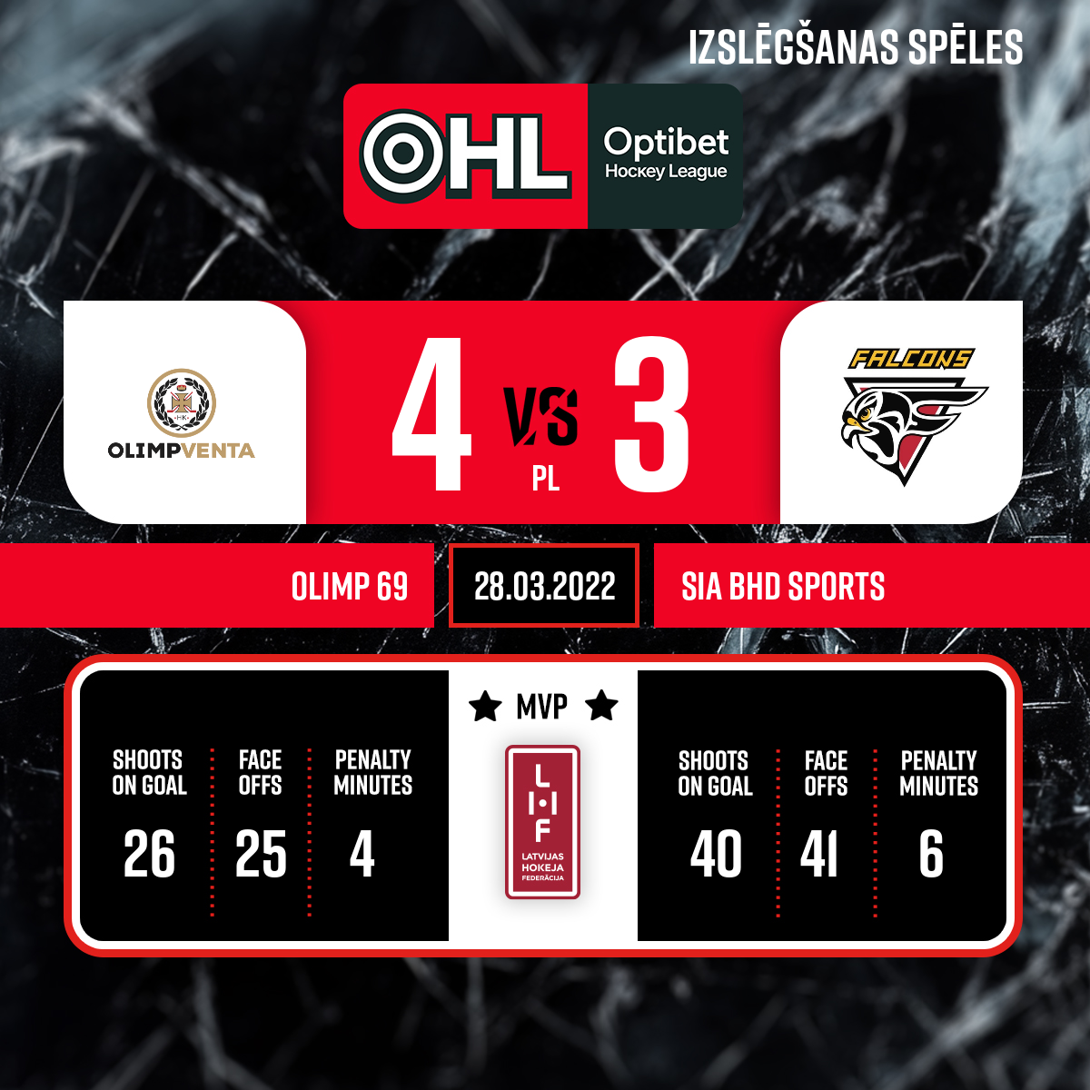 Vārti#94 Reinis Mārtiņš LEJNIEKSPiespēle: #19 Miķelis RĒDLIHS - 60:00 Papildlaika sākums