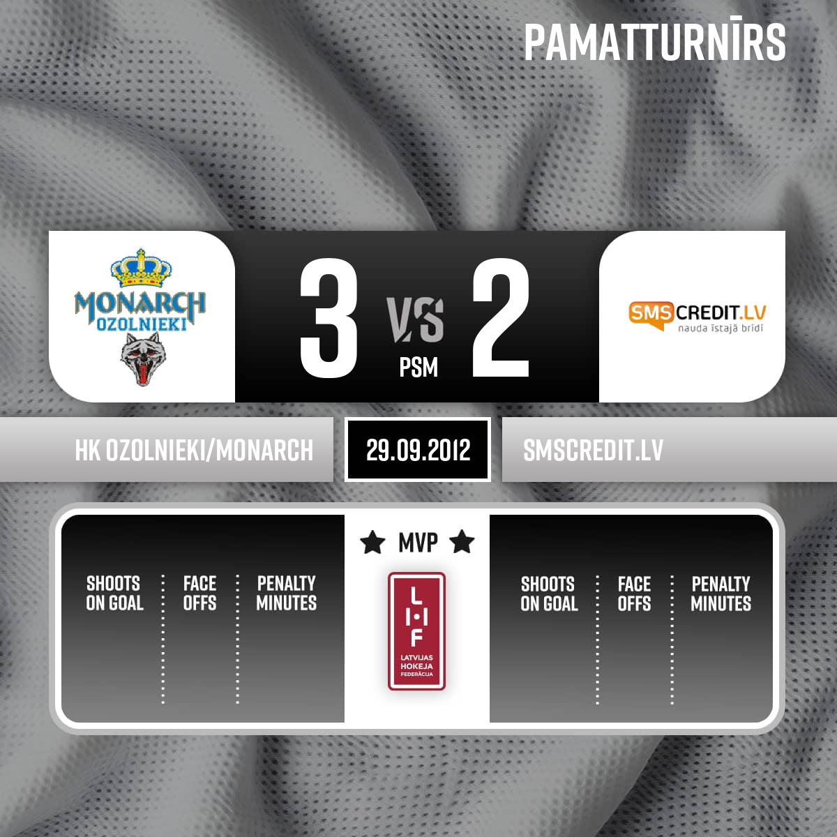 Noraidījums - 2 minūtesKlupināšana, #5 Andrejs LAVRENOVS - 00:001.PSpēles tiesneši: Galvenais tiesnesis- Gints Zviedrītis, līnijtiesneši - Armands Bedrītis, Oļegs Kokins