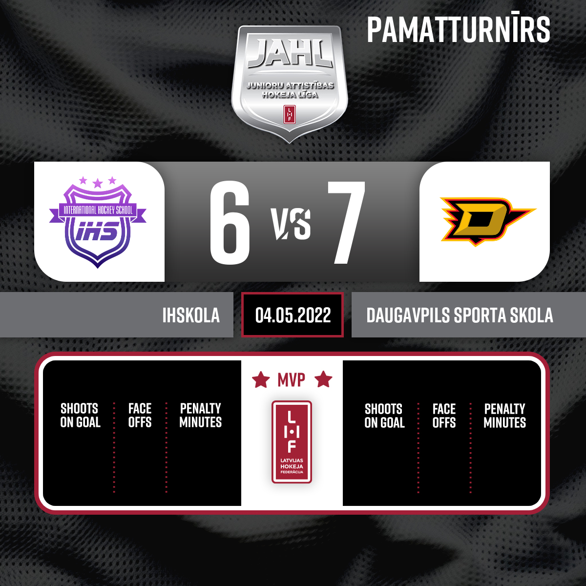 Vārti#4 Maksims GALILEJEVSPiespēles: #17 Artjoms TRETJAKOVS, #26 Vladislavs BARKOVSKIS - 00:001.PSpēles tiesneši: Galvenie tiesneši - Oļegs Kokins un Emīls Druseiks; Līnijtiesneši - Voldemārs Rava un Renārs Davidonis