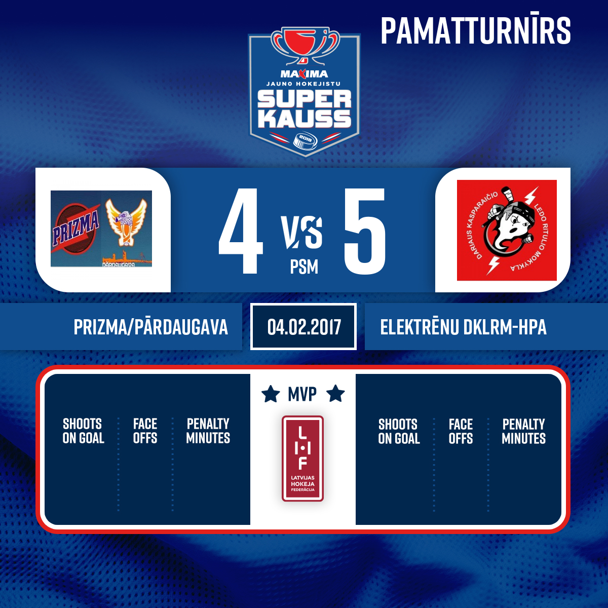 Noraidījums - 2 minūtesGrūšana uz apmali, #25 Artemij FRIZEL - 40:00 3. perioda sākums