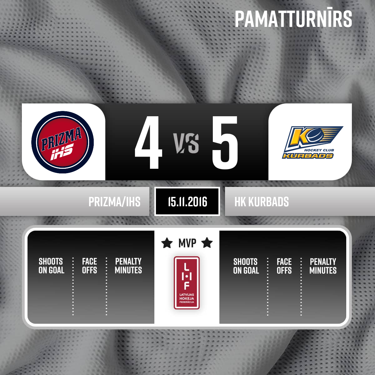 - 60:003.PSpēles labākie spēlētāji: HK Prizma #61 - Krists Apsītis HK Kurbads #18 - Toms Hartmanis