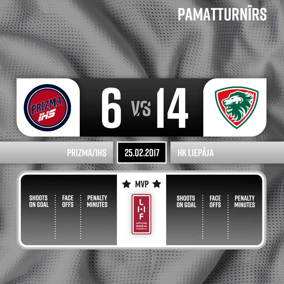 - 60:003.PLabākie spēlētāji: HK Prizma - #92 Vladislavs Koniševs HK Liepāja - #25 Kārlis Ozoliņš