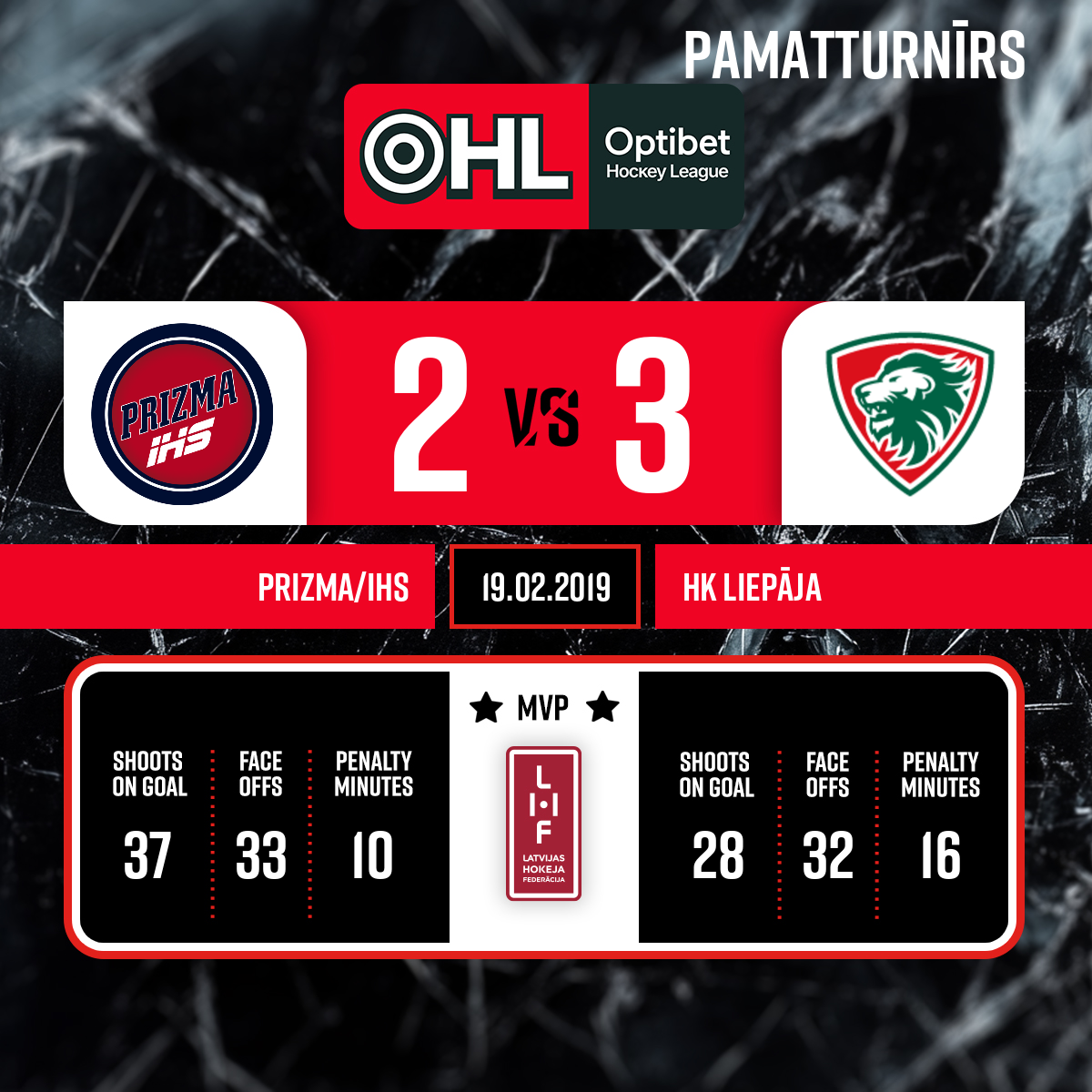 Noraidījums - 2 minūtesGrūdiens ar nūju rokās, #21 Roberts ŠTELMAHERS - 06:101.PHK Prizma spēlē pilnā sastāvā
