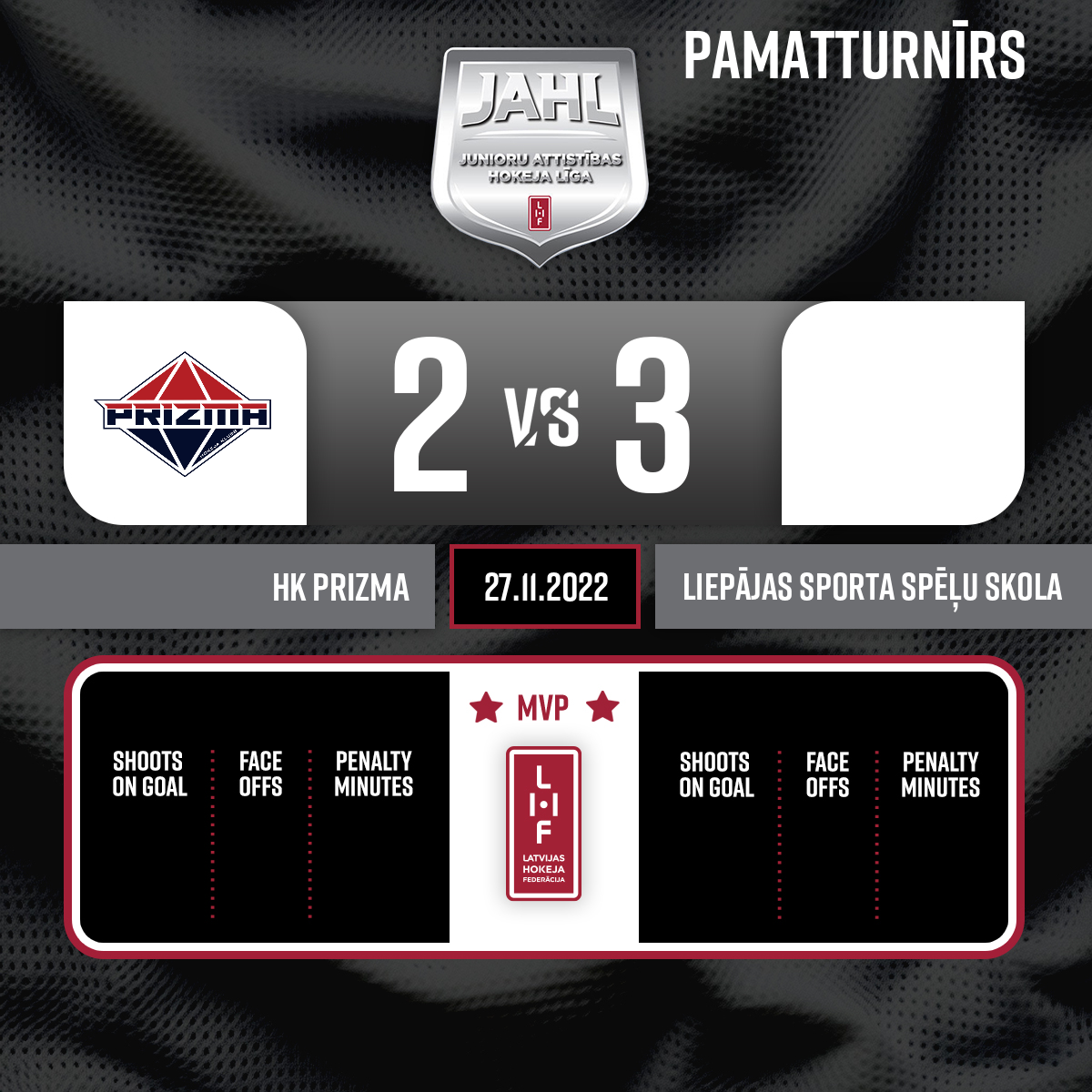 #23 Roberts KRIEVIŅŠPiespēles: #43 Rolands PUĶE#19 Miks Krišs RUNGOVSKIS1:217:34