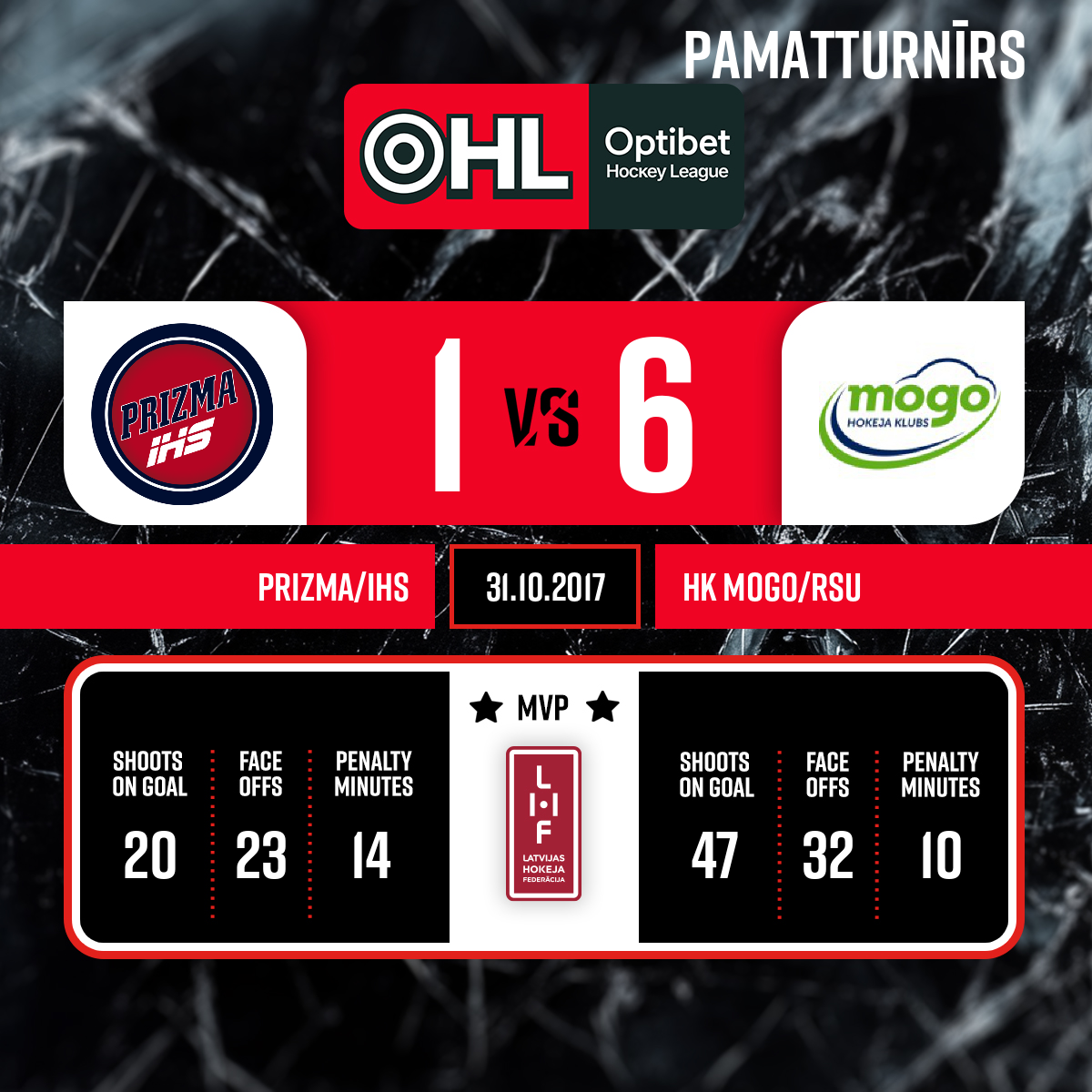 - 60:003.PSpēles labākie spēlētāji: HK Prizma - Andrejs Smirnovs; HK Mogo - Andrejs Lavrenovs
