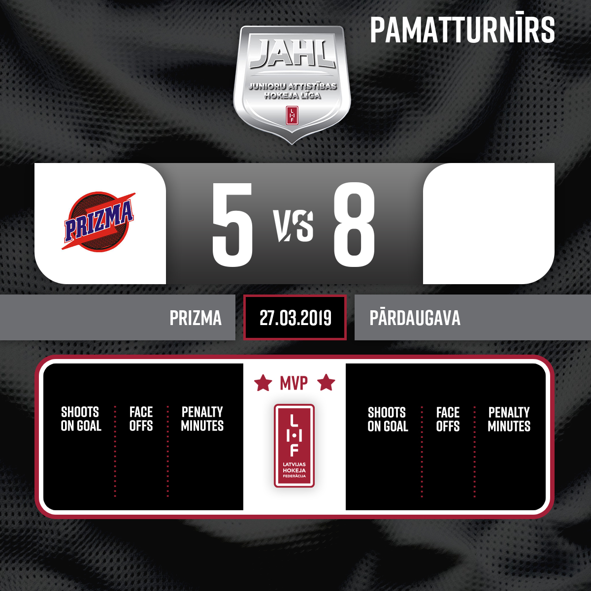 Vārti#55 Emīls MASTEIKOPiespēles: #22 Everts OZOLS, #10 Kārlis TILTIŅŠ - 00:001.PSpēles tiesneši: galvenais tiesnesis - Jānis EGLĪTIS; līnijtiesneši - Sintija ČAMANE un Ingars KĻAVIŅŠ
