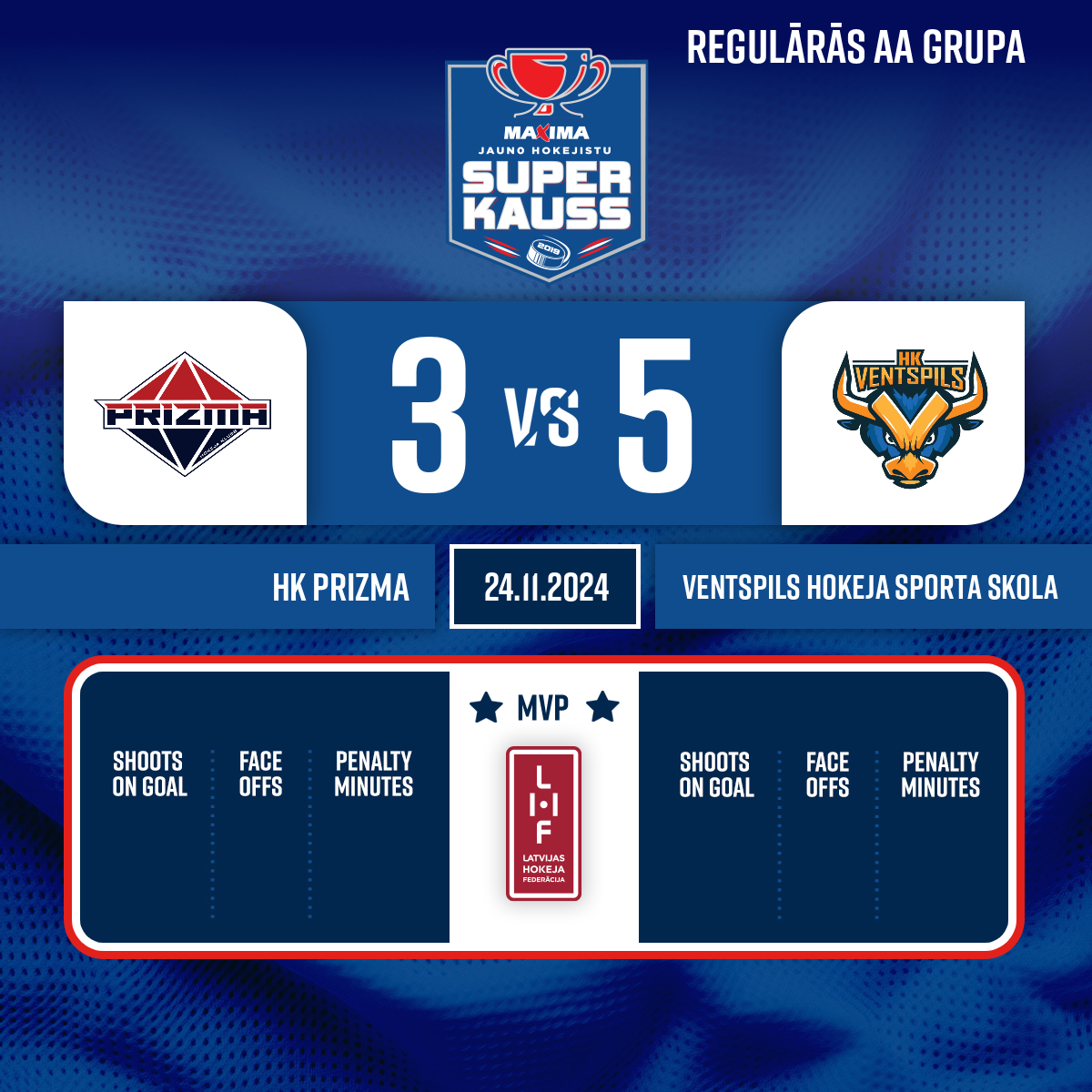 Vārti#21 Markuss KĀRKLIŅŠPiespēles: #16 Daniels SIROMOLOTOVS, #26 Gabriels JANKAUSKS