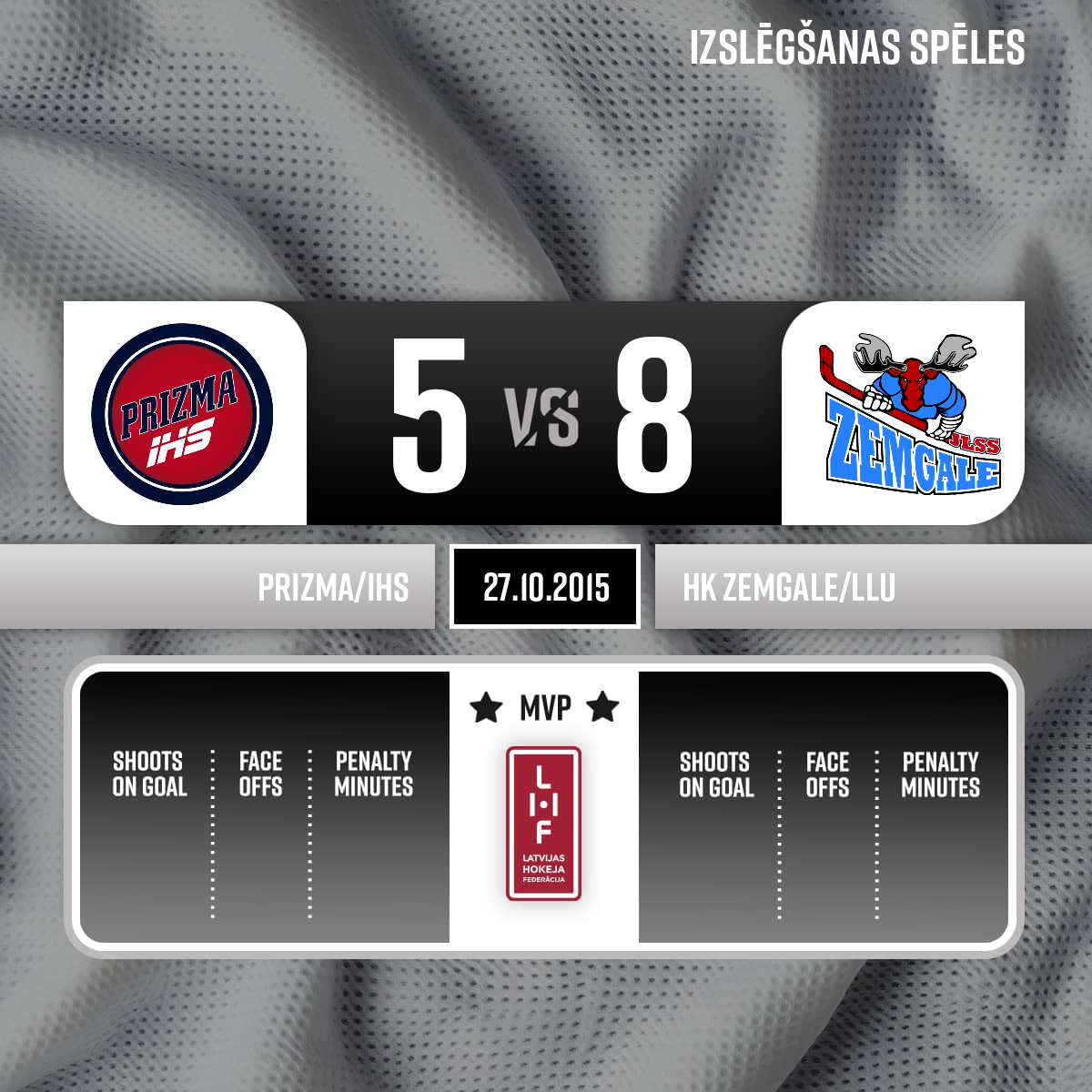 - 60:003.PLabākie spēlētāji: HK Prizma #23 - Mihails Bogdanovs HK Zemgale/LLU #88 - Danielius Nomanovas