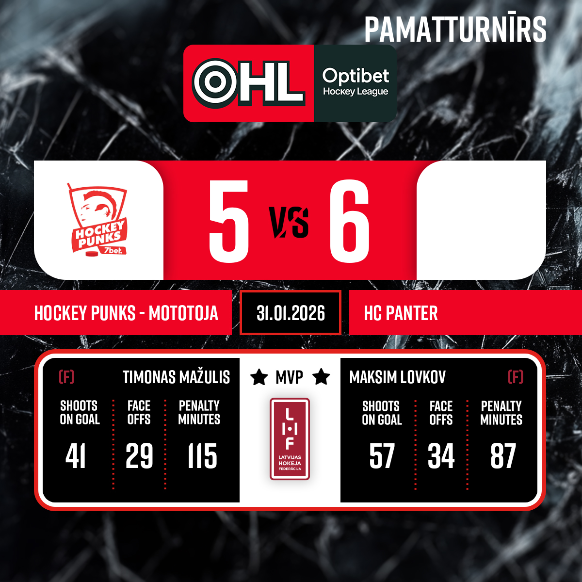 Vārti#92 Maksim LOVKOVPiespēle: #23 Nikita FEDOROVITS - 45:163.P