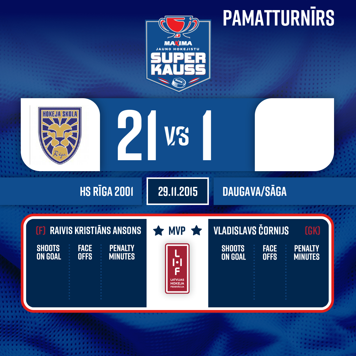 Piespēles: #27 Patriks MARCINKEVIČS#28 Gļebs PROHORENKOVS6:1VM1, 11:43