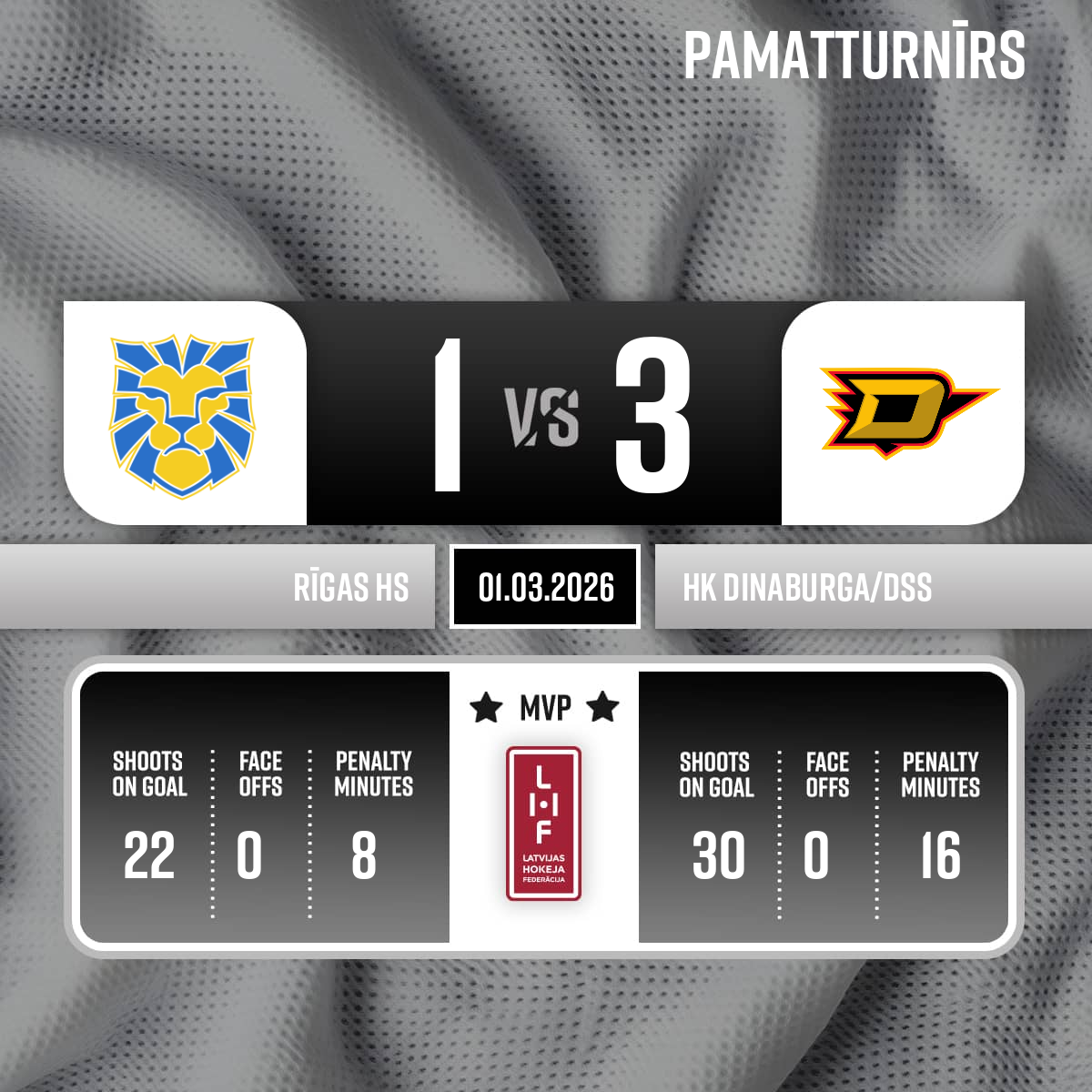 Noraidījums - 2 minūtesPretinieka turēšana, #17 Artjoms TRETJAKOVS - 40:00 3. perioda sākums