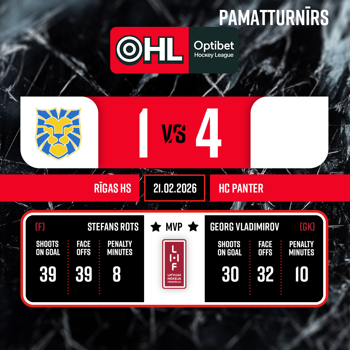 Vārti#7 Kristers OBUKSPiespēles: #22 Stefans ROTS, #39 Daniils DANOVSKIS - 20:582.P