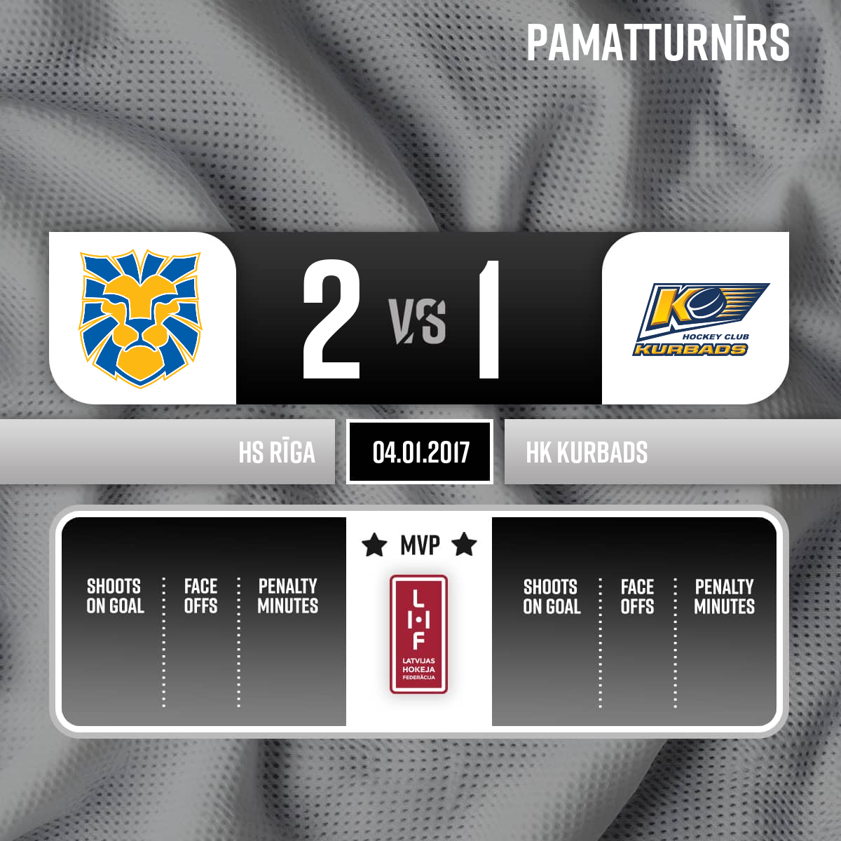 - 60:003.PLabākie spēlētāji: HS Rīga - #42 Normunds Borskovičs HK Kurbads - #22 Mārtiņš Gipters