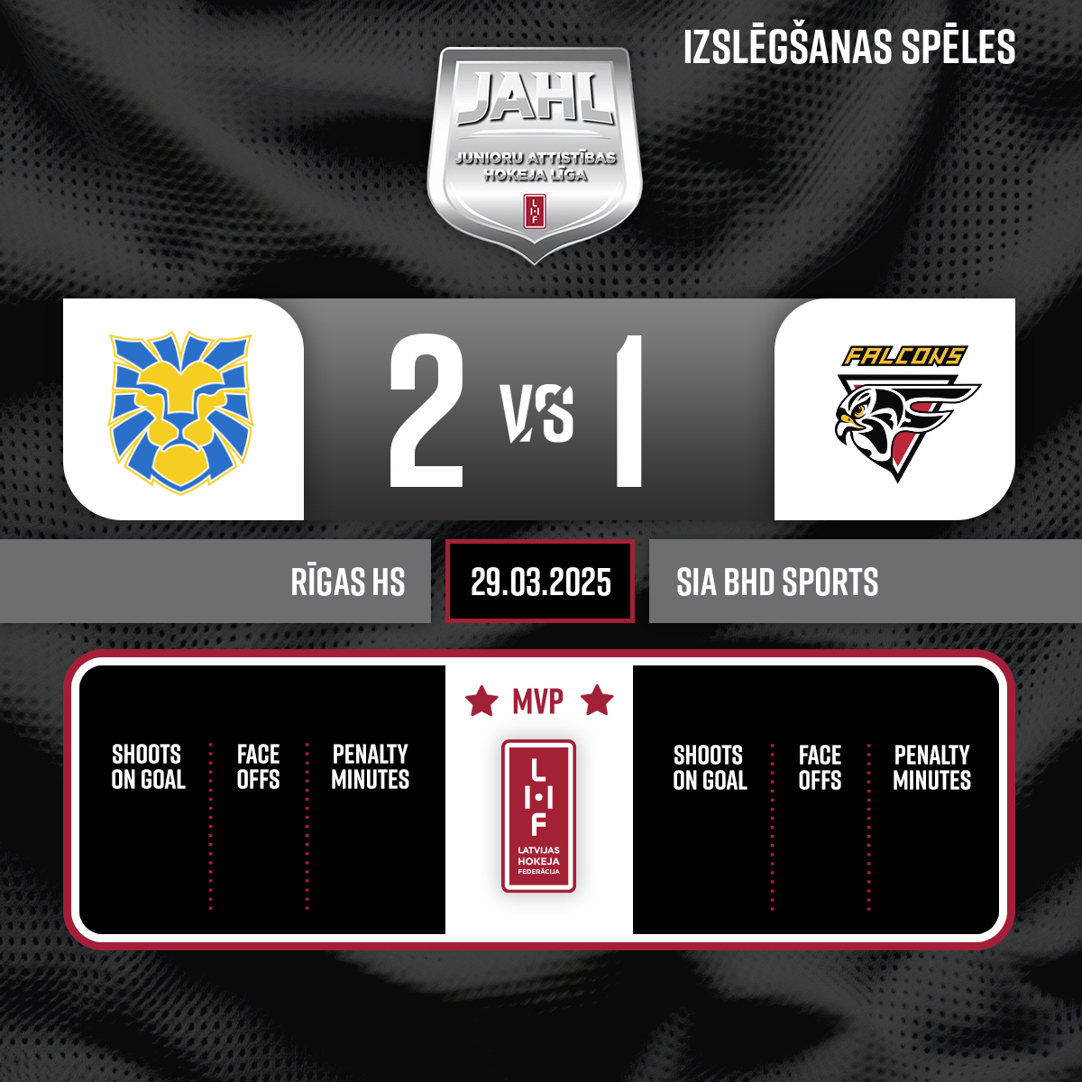 Noraidījums - 2 minūtesPretinieka turēšana ar nūju, #5 Petr DEMCHENKO - 00:001.PSpēles tiesneši: Galvenie tiesneši- Agris Ozoliņš un Andrejs Kudrjašovs Līnijtiesneši- Vladislavs Odiņš un Viesturs Lēvalds