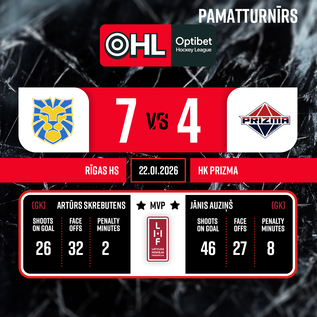 Vārti#69 Roberts VORONAPiespēles: #70 Rodrigo STRAUTIŅŠ, #19 Ričards STĀMURS
