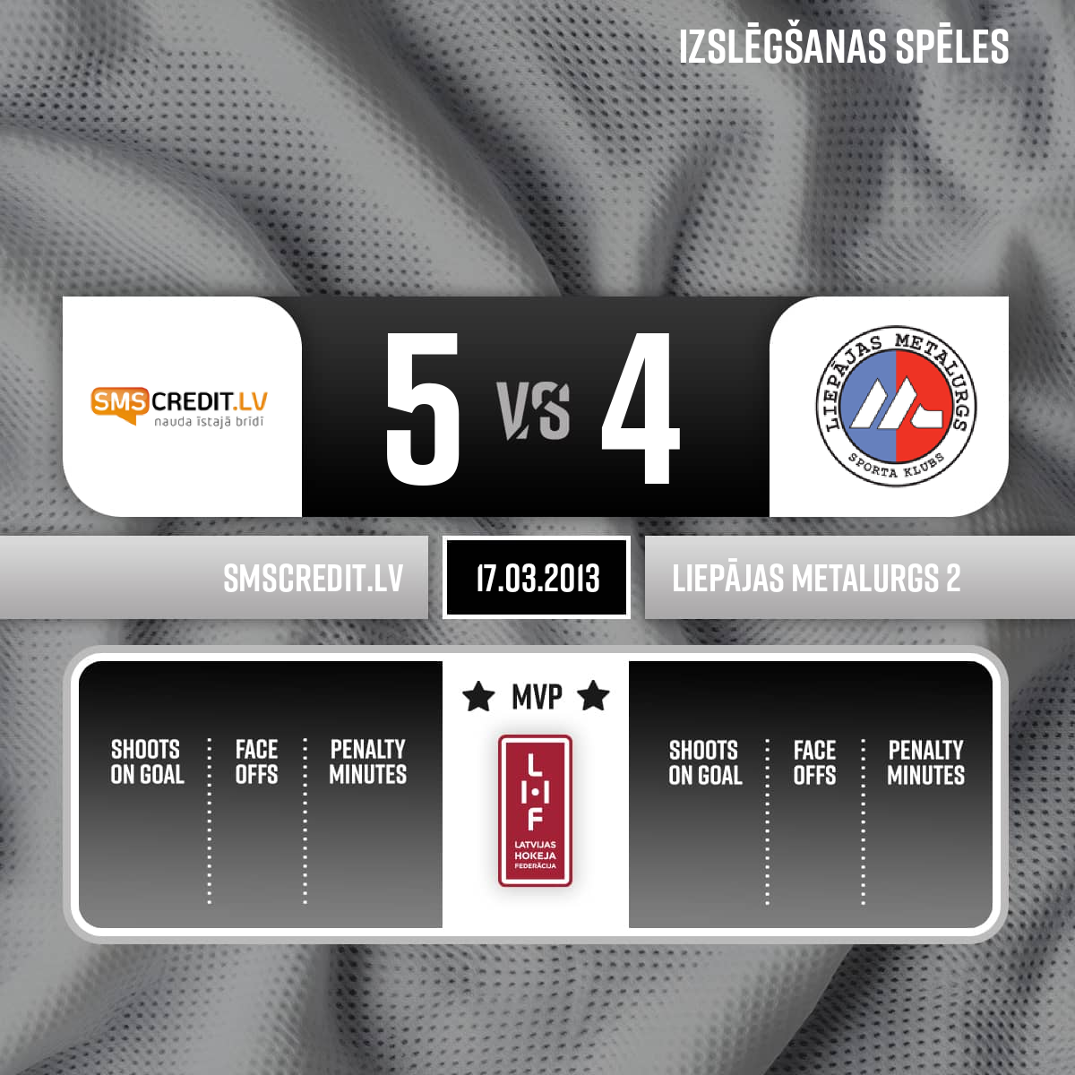 Noraidījums - 2 minūtesPretinieka turēšana ar nūju, #33 Valerijs FIĻIMONOVS - 00:001.PSpēles tiesneši: Galvenie tiesneši: Zviedrītis Gints, Griškevičs Jevgēnijs, līnijtiesneši: Laicāns Juris, Locāns Māris. Spēles inspektors - Kudrjašovs Andrejs