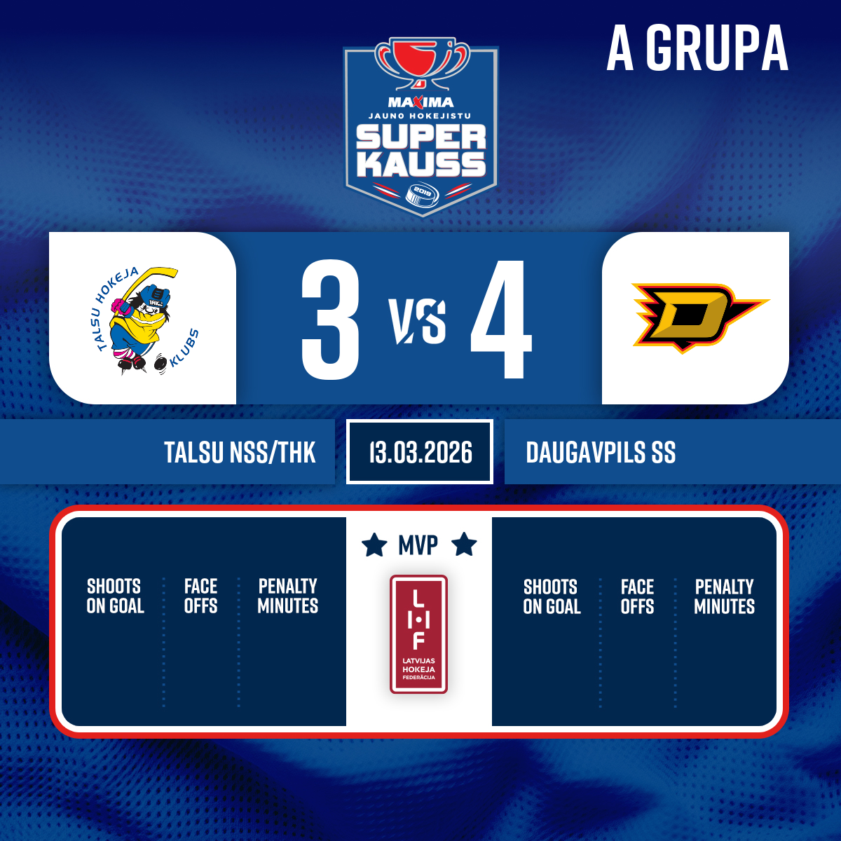 Vārti#33 Artūrs GRIŅKOPiespēle: #25 Markuss SALCEVIČS - 40:00 3. perioda sākums