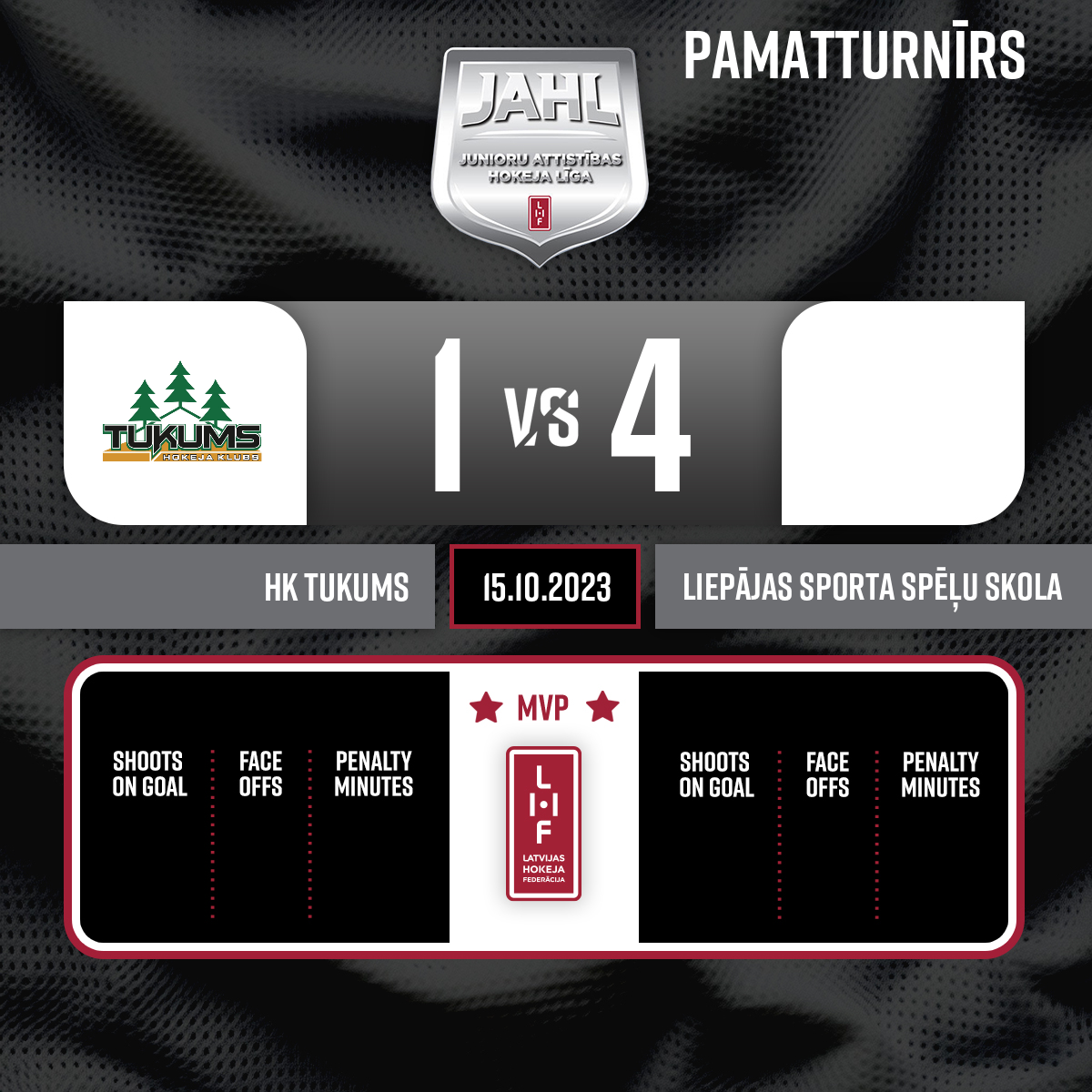 Noraidījums - 2 minūtesPretinieka turēšana ar nūju, #10 Timurs SOLOSTEJS - 00:001.PSpēles galvenais tiesnesis - Sintija Čamane. Spēles līnijtiesneši - Viesturs Lēvalds, Gatis Everts.