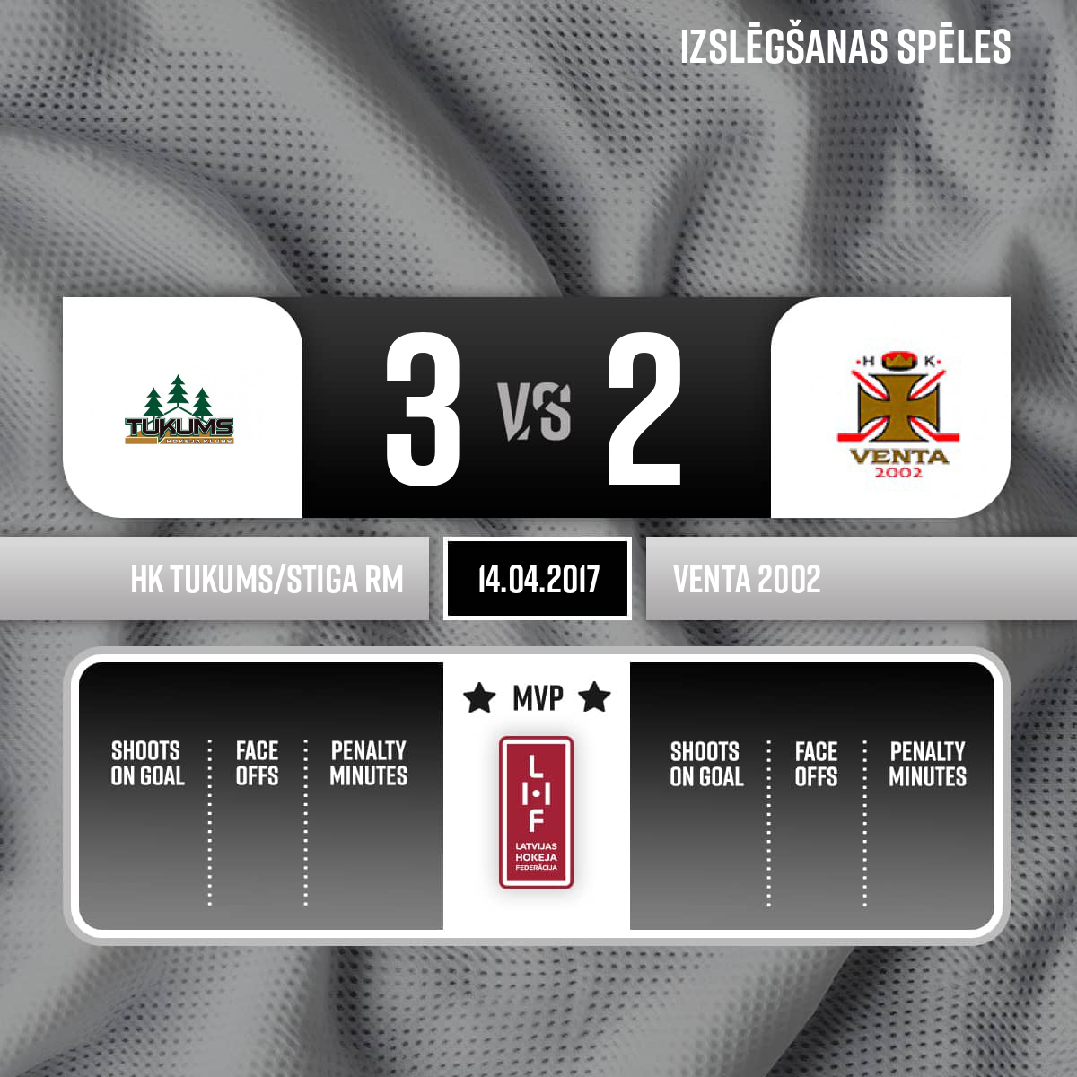 Noraidījums - 2 minūtesKlupināšana, #15 Gustavs CELMS - 00:001.PLabvakar! Šī vakara spēli tiesā: Galvenie tiesneši: Juris Balodis; Griškēvics Jevgēņijs. Līnijtiesneši: Briedis Ričards; Kokins Oļegs.