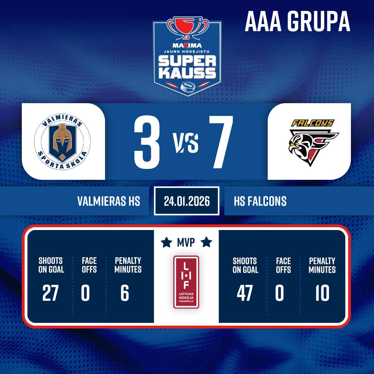 Piespēles: #26 Kirills KLIHS#7 Aleksejs GAIDUKOVS3:7VV1, 50:56