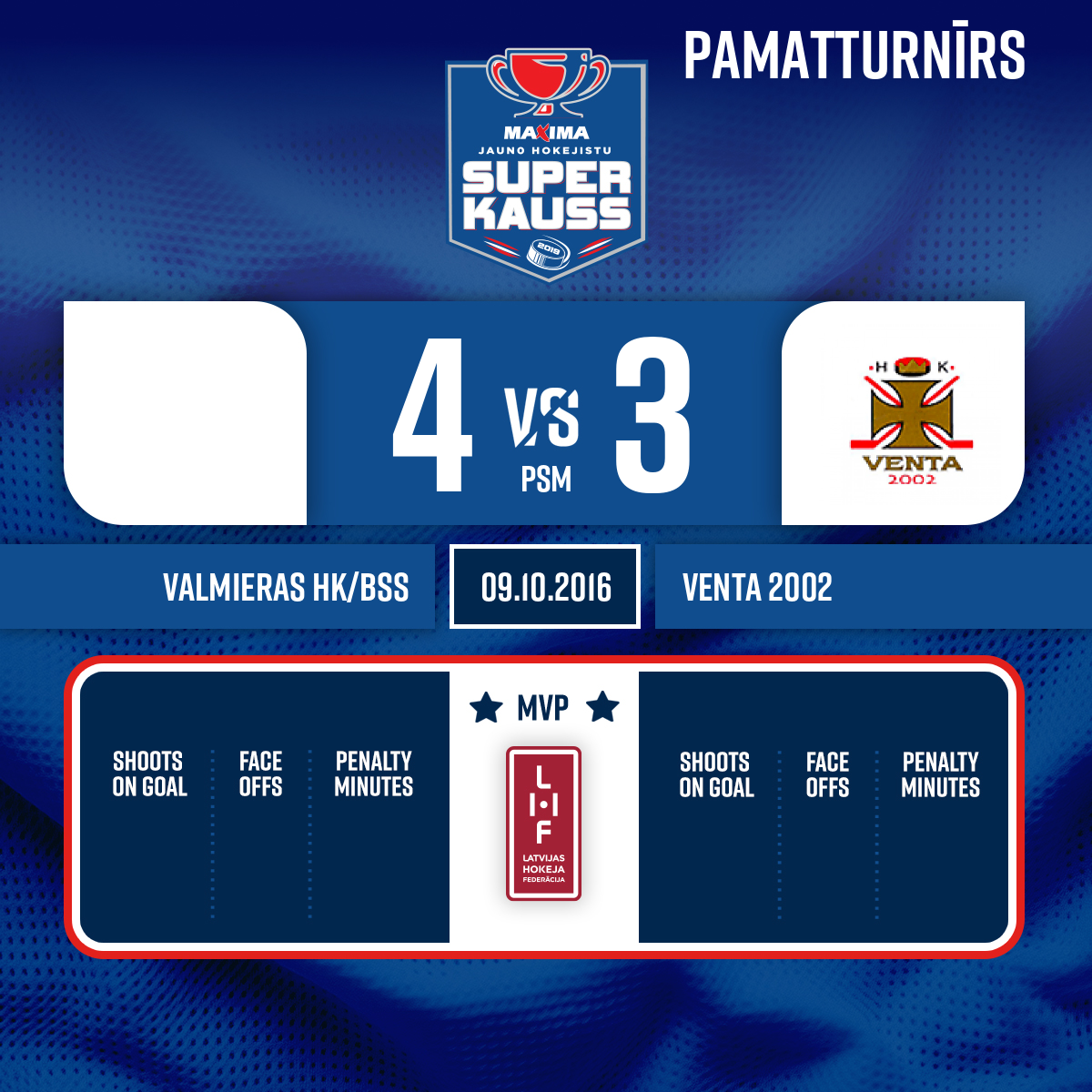 #15 Kristers BUKŠSPiespēles: #88 Toms TROCKIS#7 Markuss ESĪTIS2:124:16- 1. Periods
