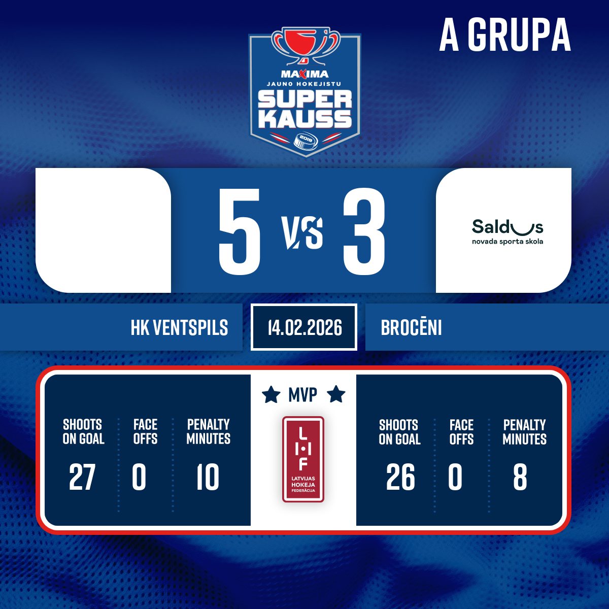 Vārti#49 Valters ĻIPOVSKISPiespēles: #32 Dominiks KONTANTS, #87 Rihards SILIŅŠ - 43