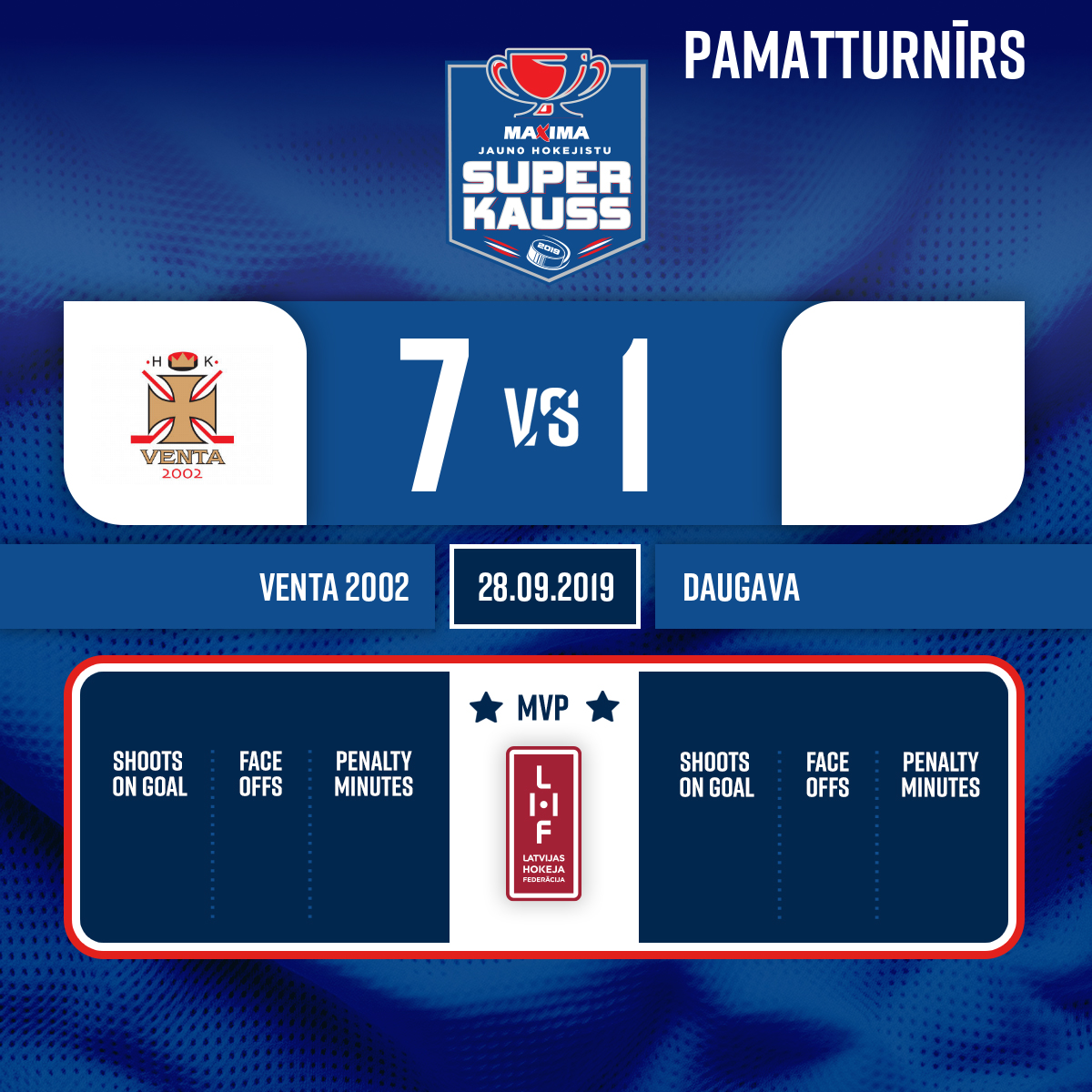 Vārti vairākumā (+2)#19 Aleksis KARIŅŠPiespēles: #3 Roberts SILIŅŠ, #31 Gustavs HUHKA - 34:182.PNoraidījums - 10 minūtesDisciplinārsods, #4 Markuss ŠMATS